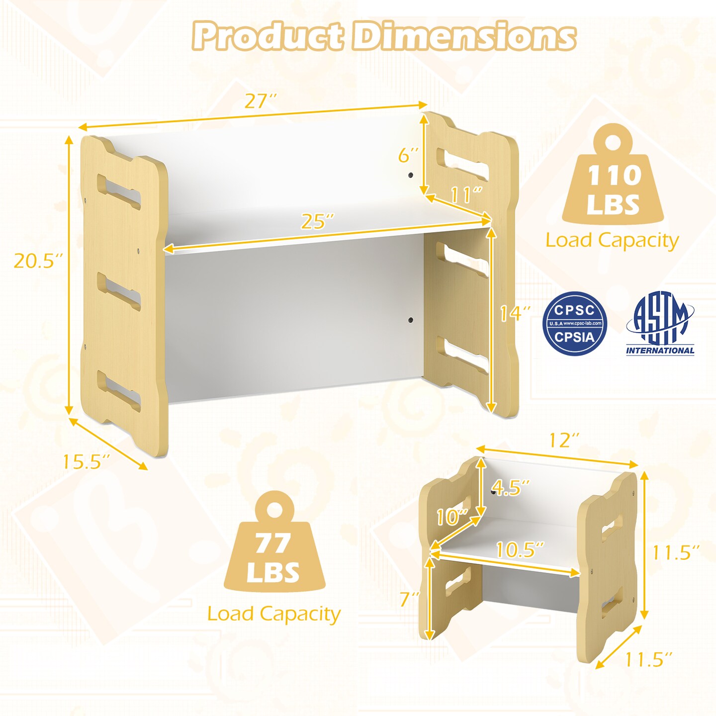 Natural MDF Kids Table and Chair Set 3 Piece Activity Desk with Stools for Homework Drawing