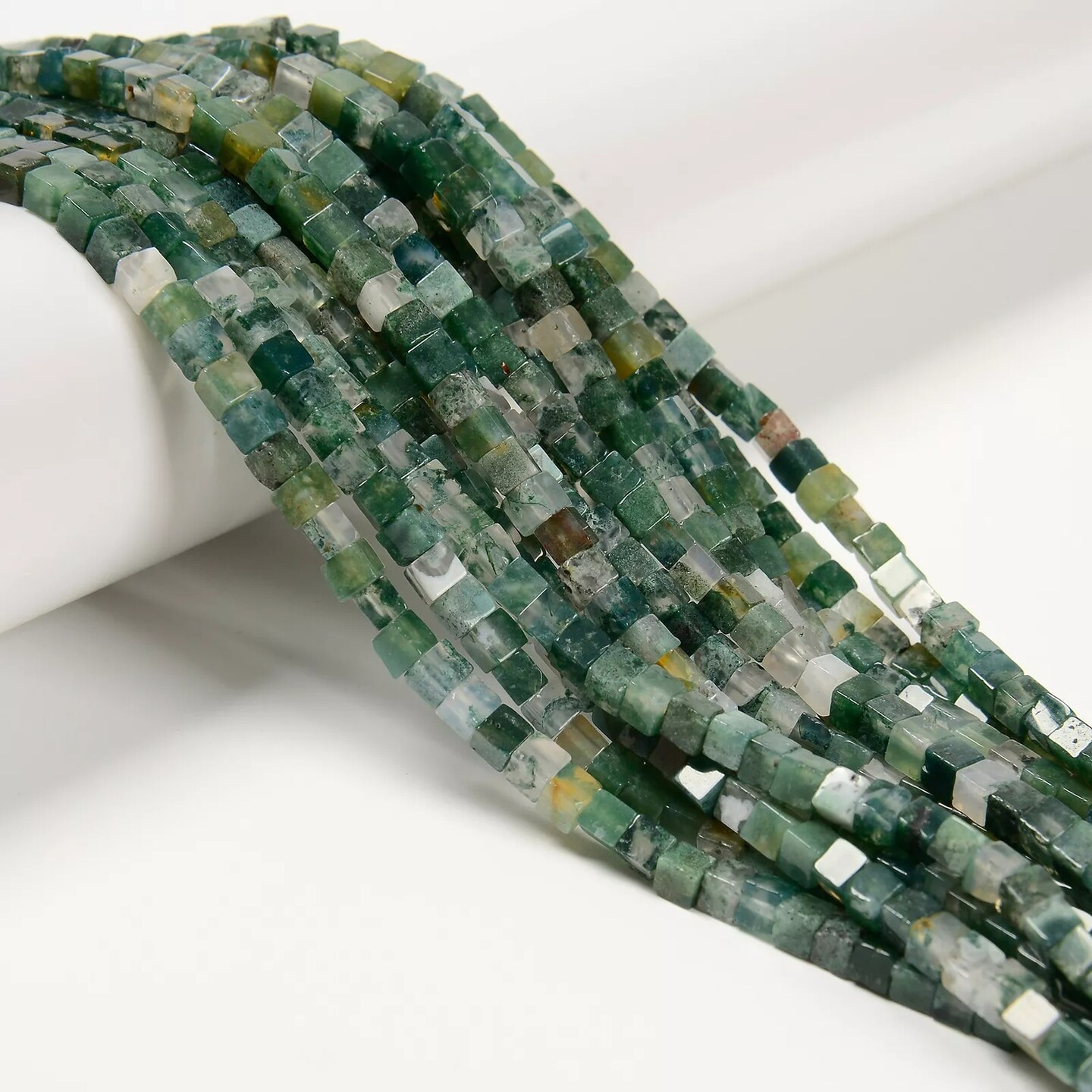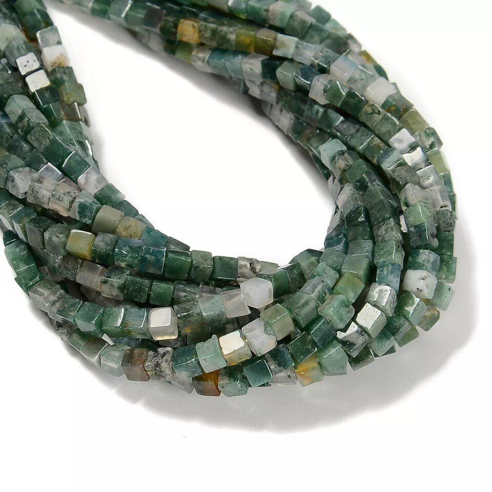 Natural Moss Agate Smooth Cube Beads Size 4mm 15.5'' Strand