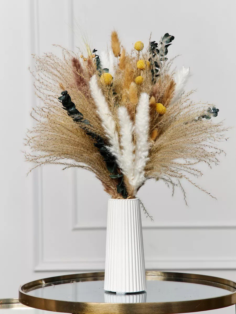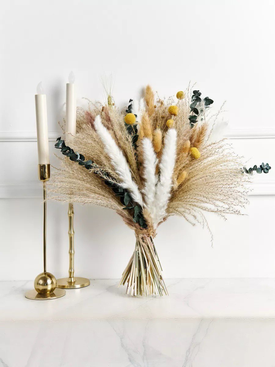 Natural Pampas Grass Decor Boho Dried Flowers Bouquet with Bunny Tails, Reed Grass for Wedding Boho Home Table Decor