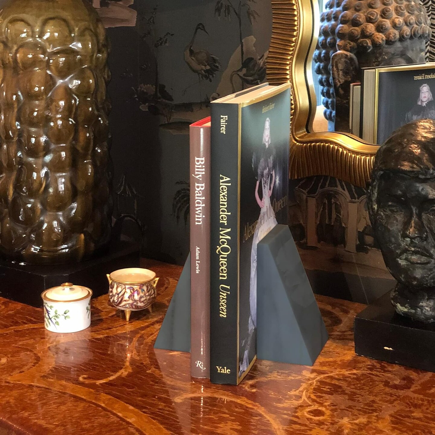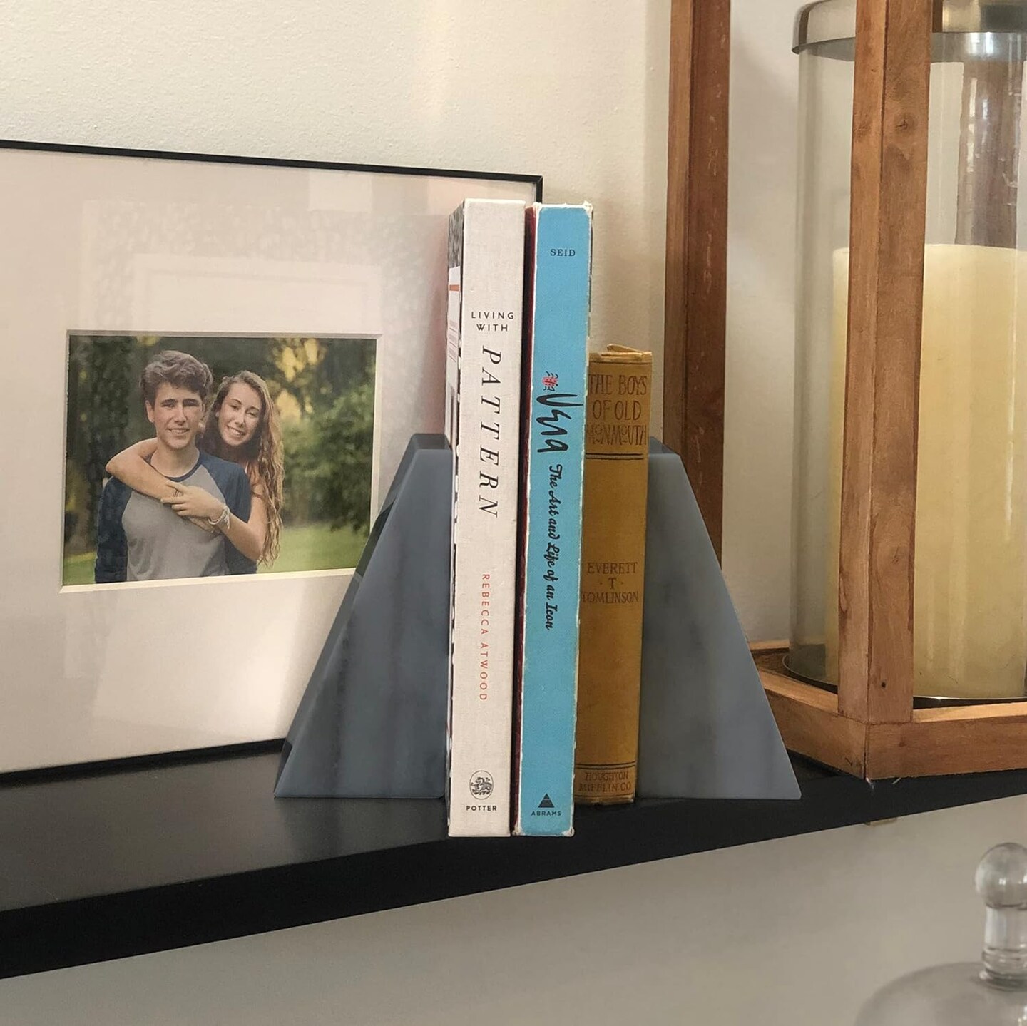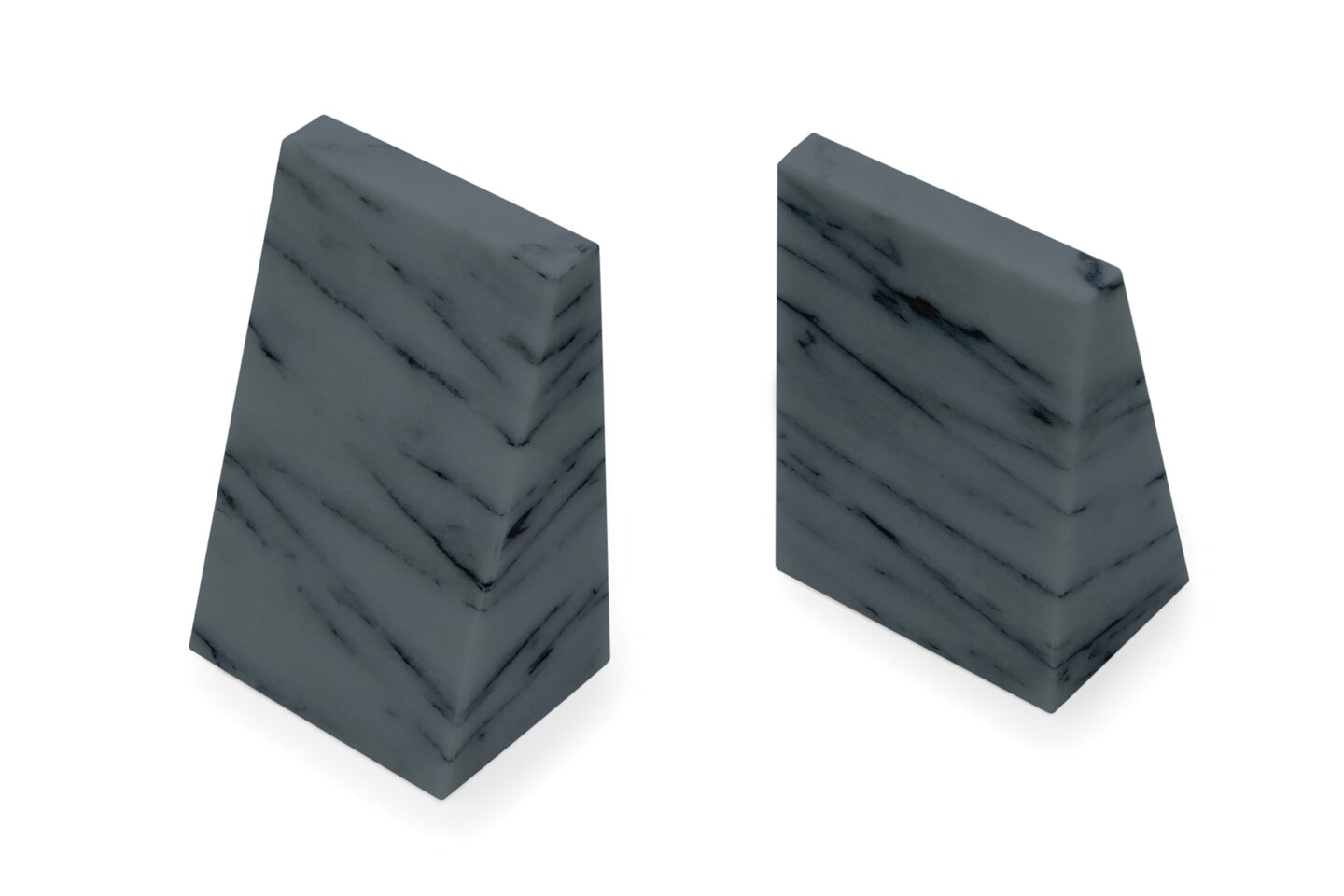 Natural Polished Marble Bookends, Grey, Set of 2, Triangular