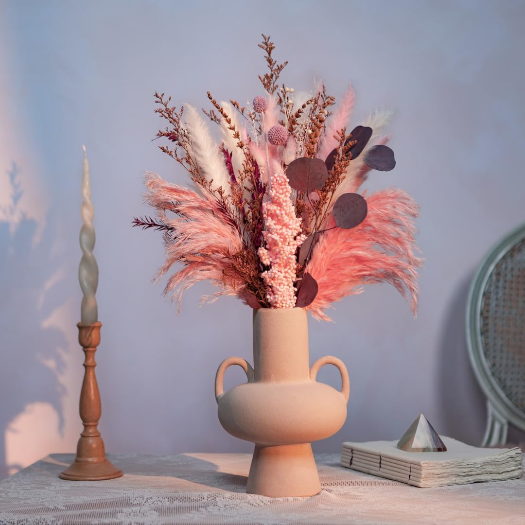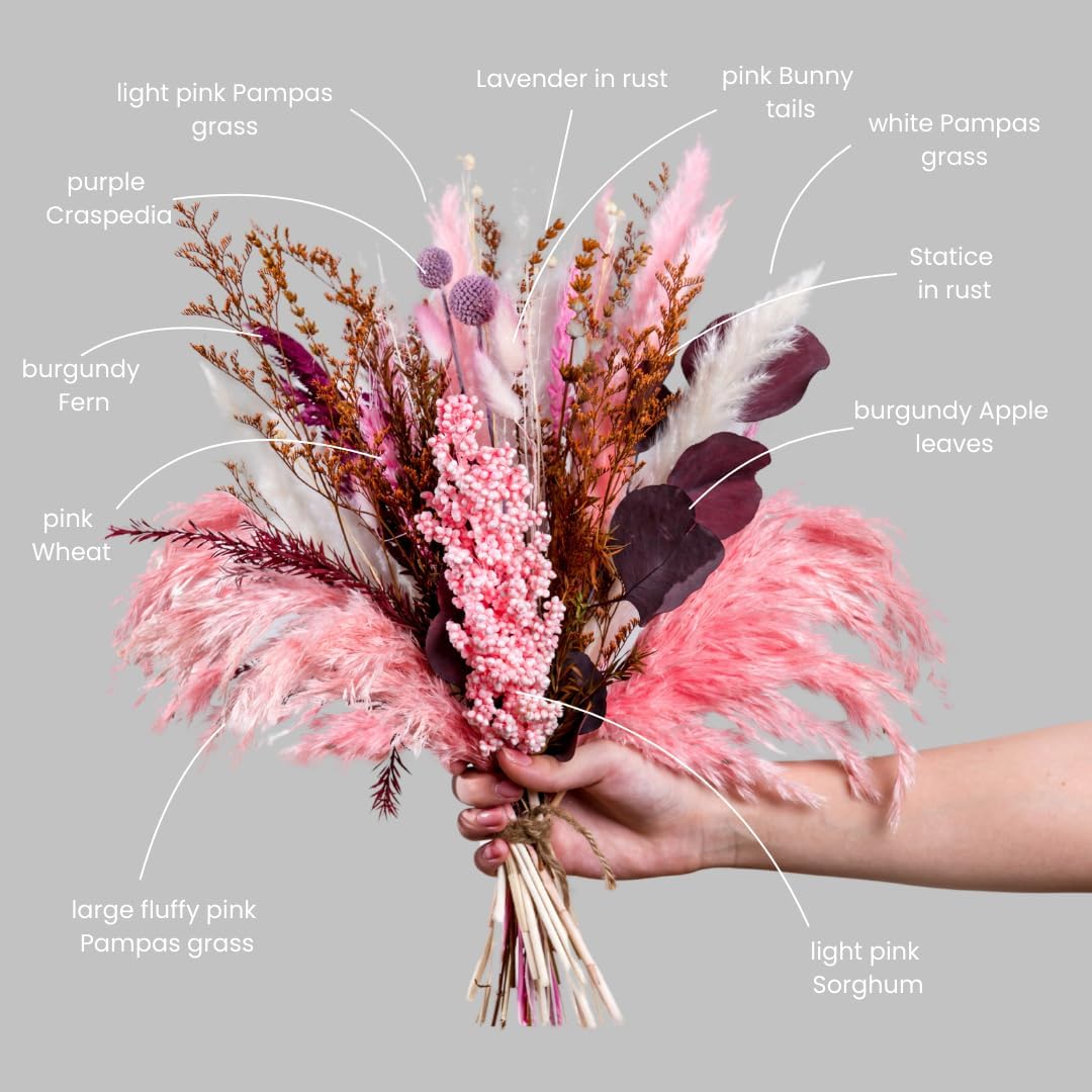 Natural Preserved & Dried 17 inch Flower Bouquet| Real Dried Flower Arrangements for Home, Office Decoration, Weddings, Pink Pampas, White Pampas, Lavender, Bunny Tails