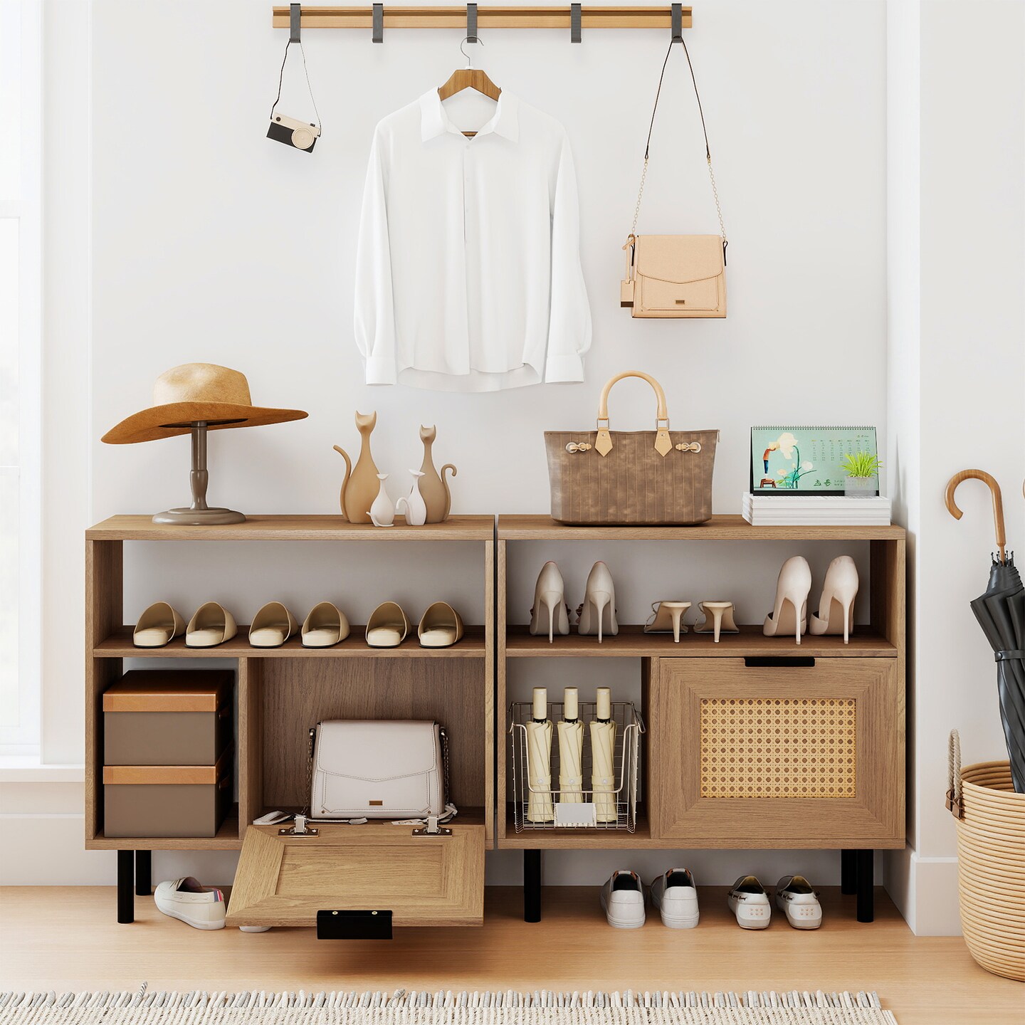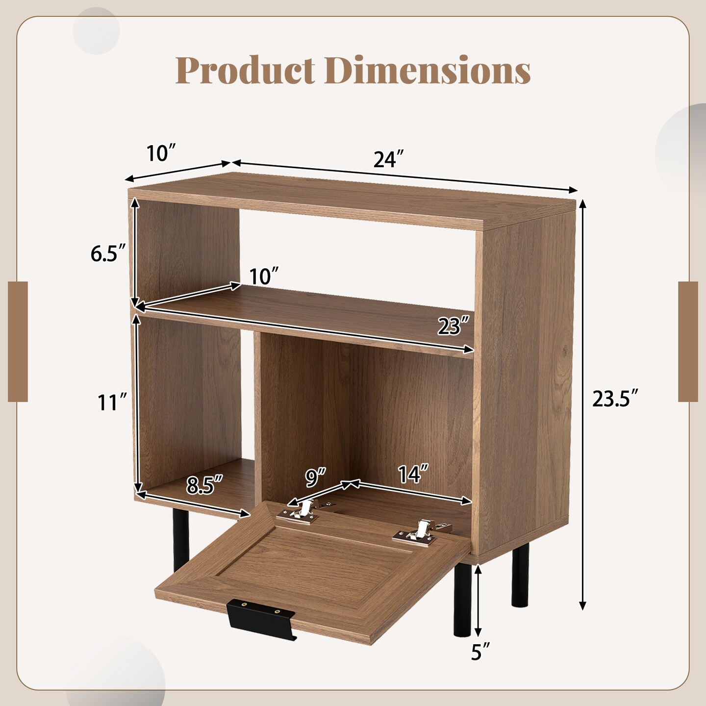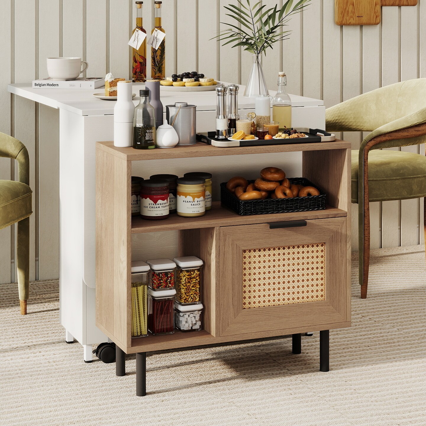 Natural Rattan Side Table Rustic Storage Cabinet With Metal Legs 24 Inch