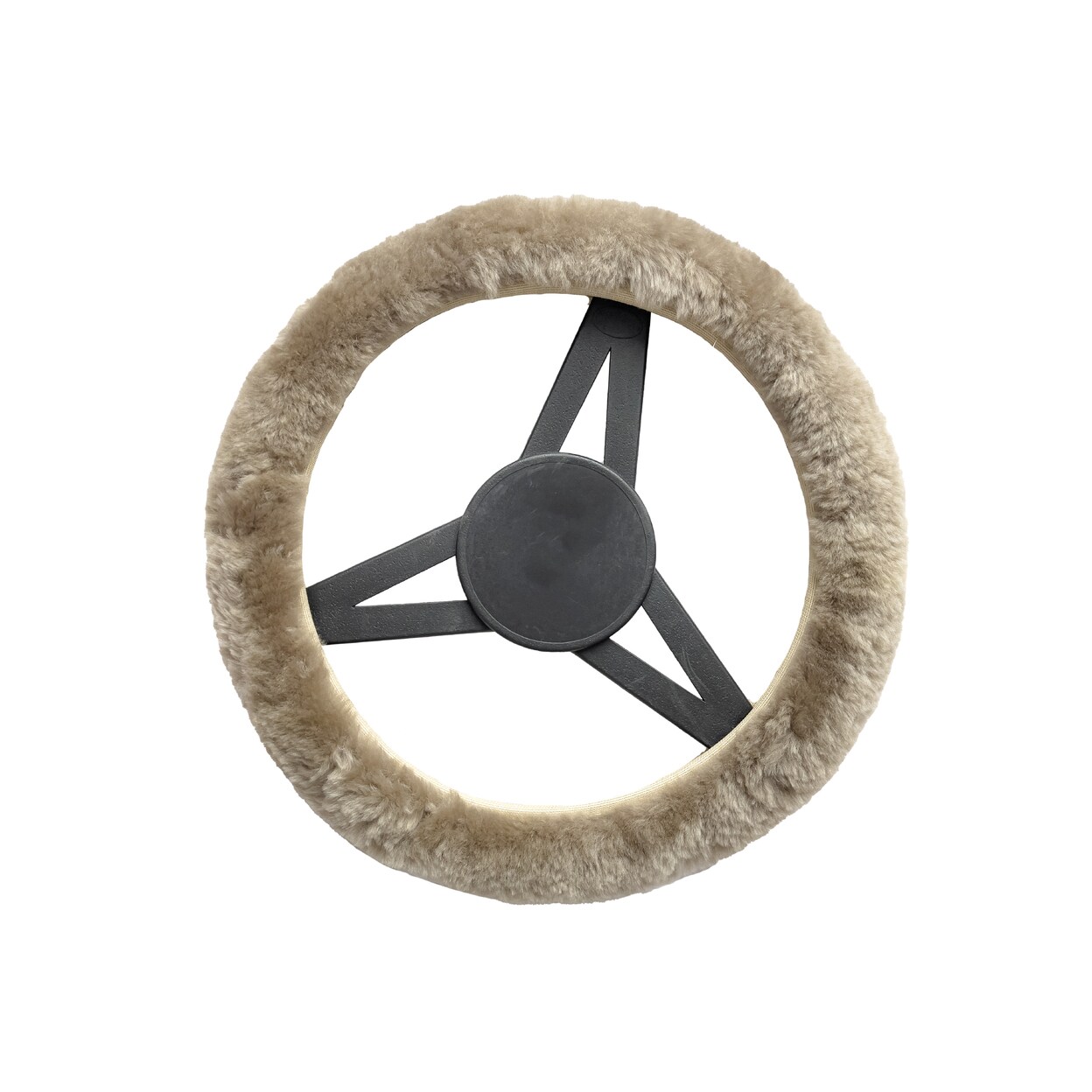 Natural Sheepskin Steering Wheel Cover Taupe 14-16 Inch Universal Fit
