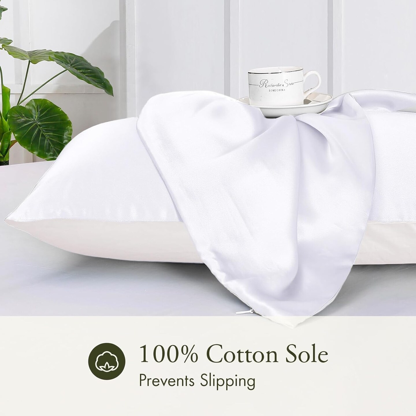 Natural Silk Pillowcase for Hair and Skin with Cotton Underside Standard 20x26 Inch White 1pc 19 Momme