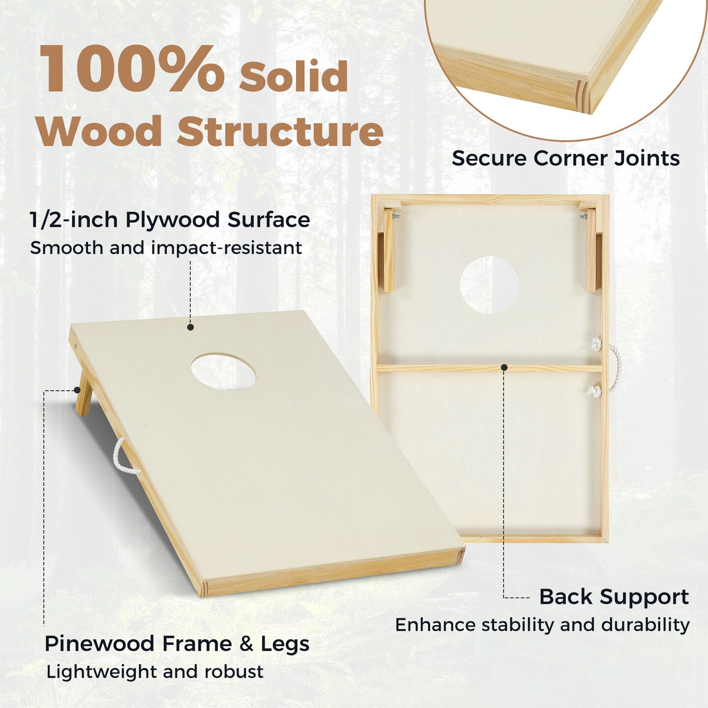 Natural Solid Wood Cornhole Board Set Portable Corn Hole Game Board Includes 8 Bean Bags
