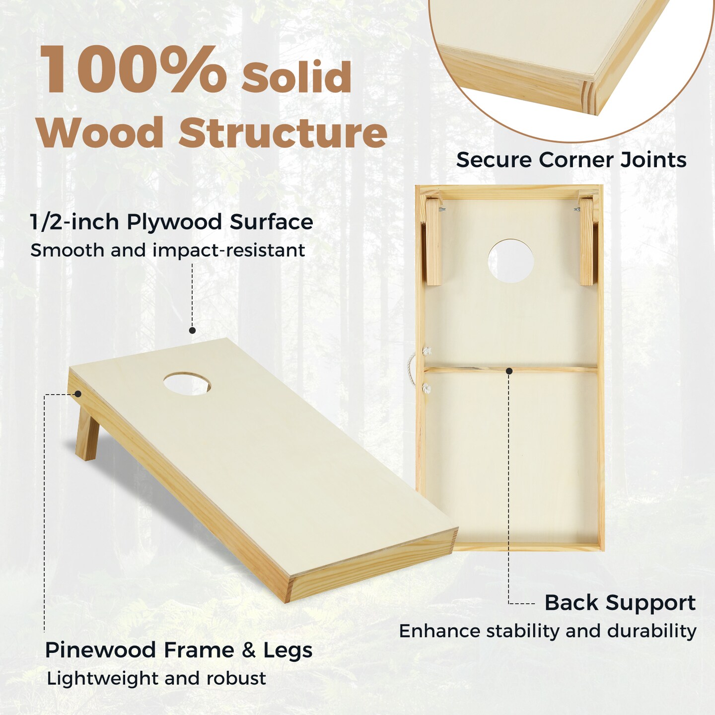 Natural Solid Wood Cornhole Board Set Portable Corn Hole Game Board Includes 8 Bean Bags