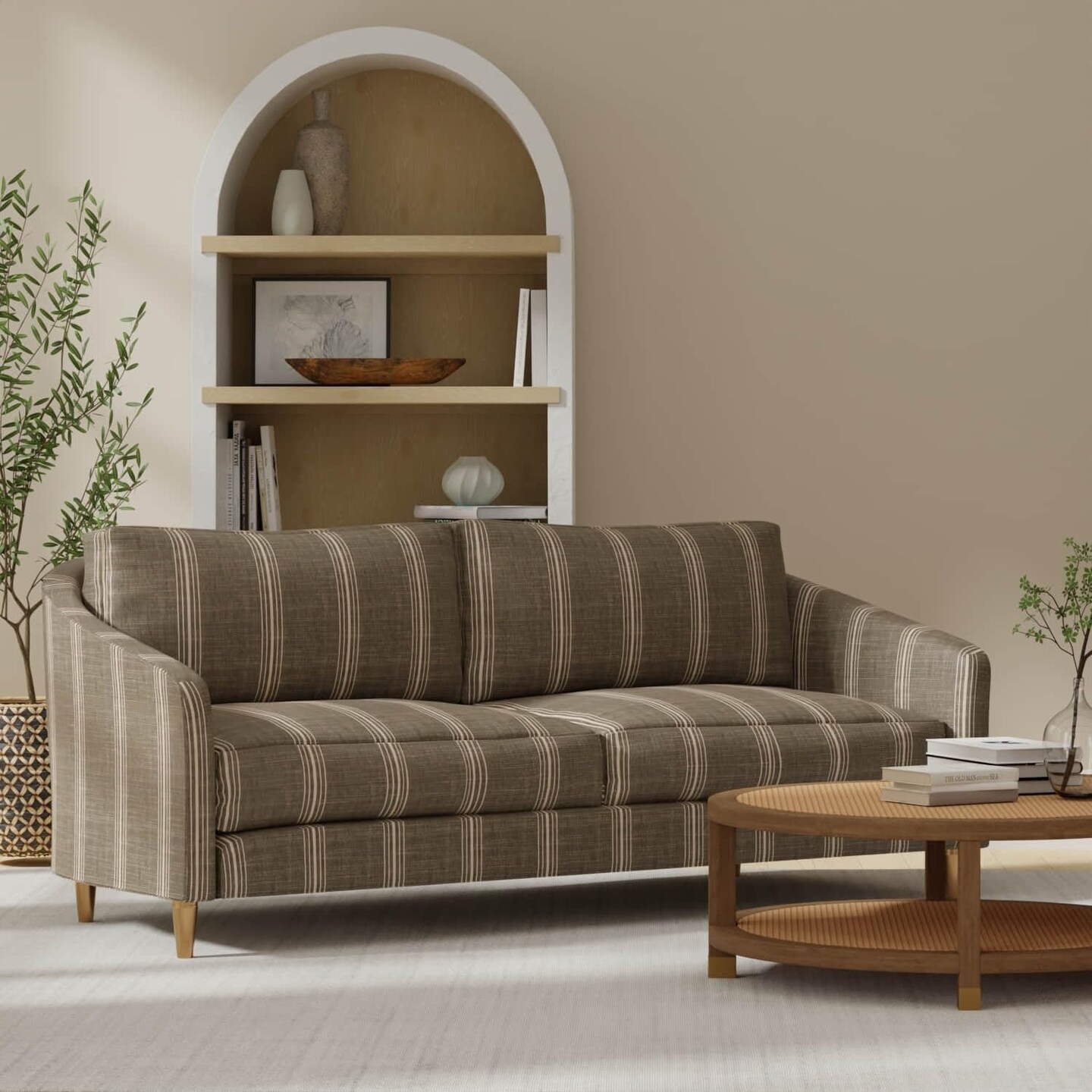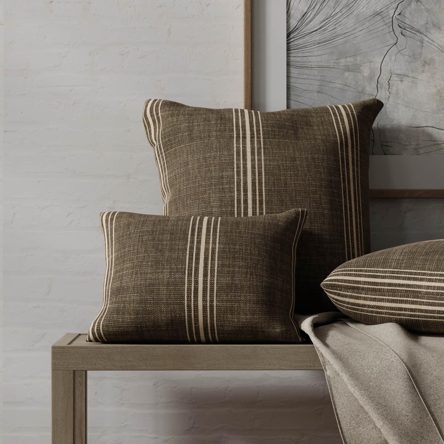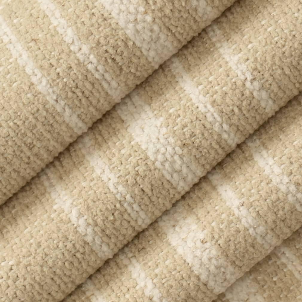 Natural Stain Resistant Performance Pet Friendly Stripe Linen Look Textured Woven Pattern Upholstery Fabric by The Yard - SKU: Maxine Sand