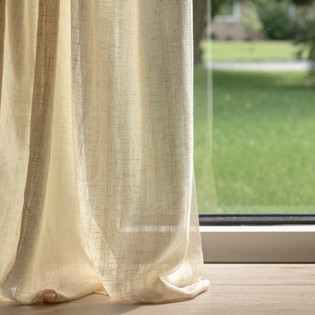 Natural Stripe Linen Look Sheer Upholstery Fabric by The Yard - SKU: Micah Dune