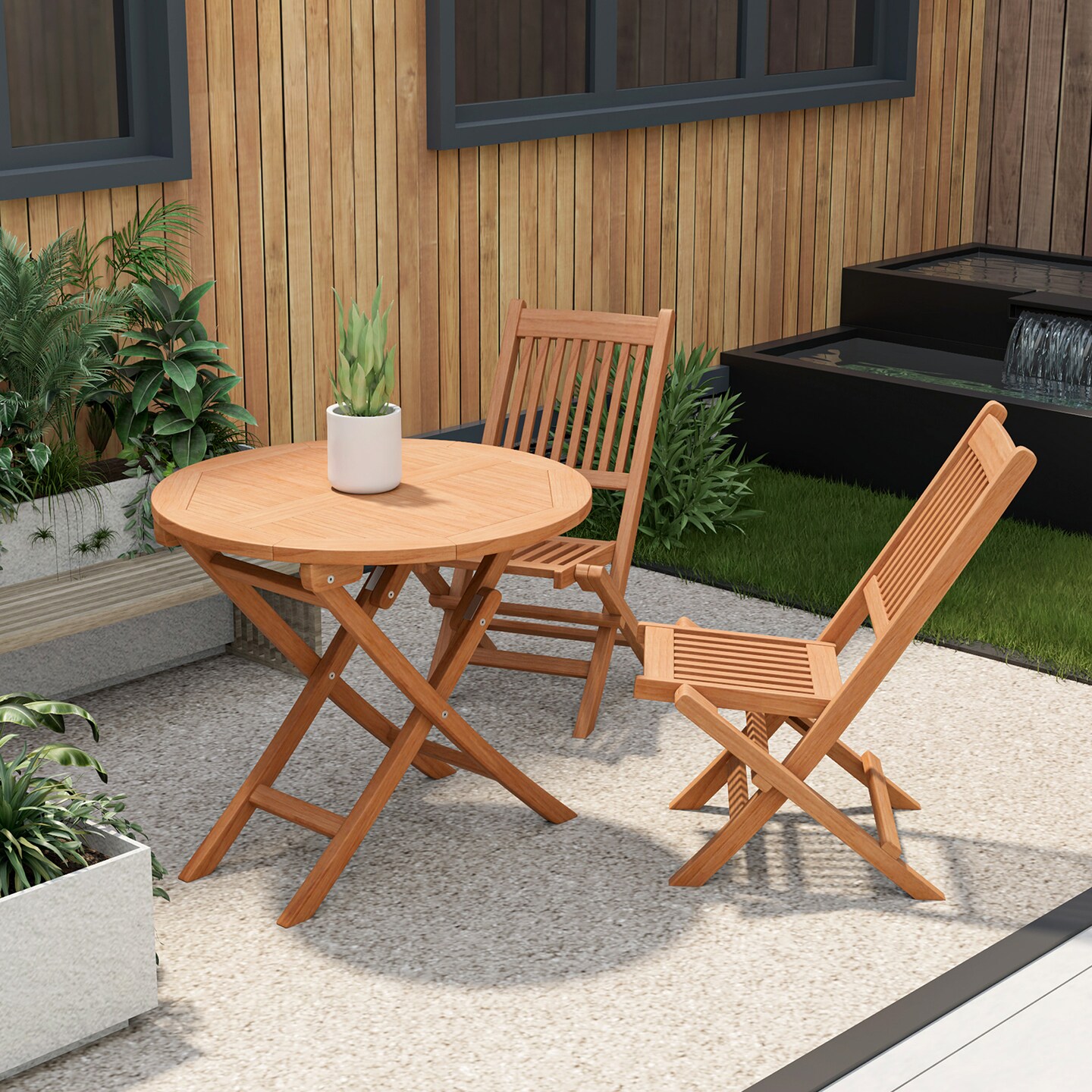 Natural Teak Wood Folding Coffee Table for 4 with X-Shape Stability