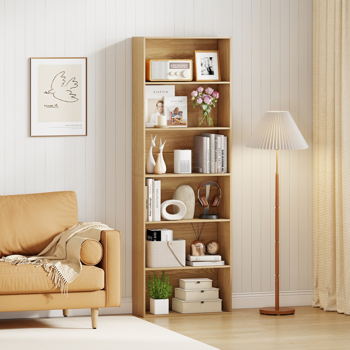 Natural Tier Bookcase with Open Shelves & Anti-Toppling Kits 6