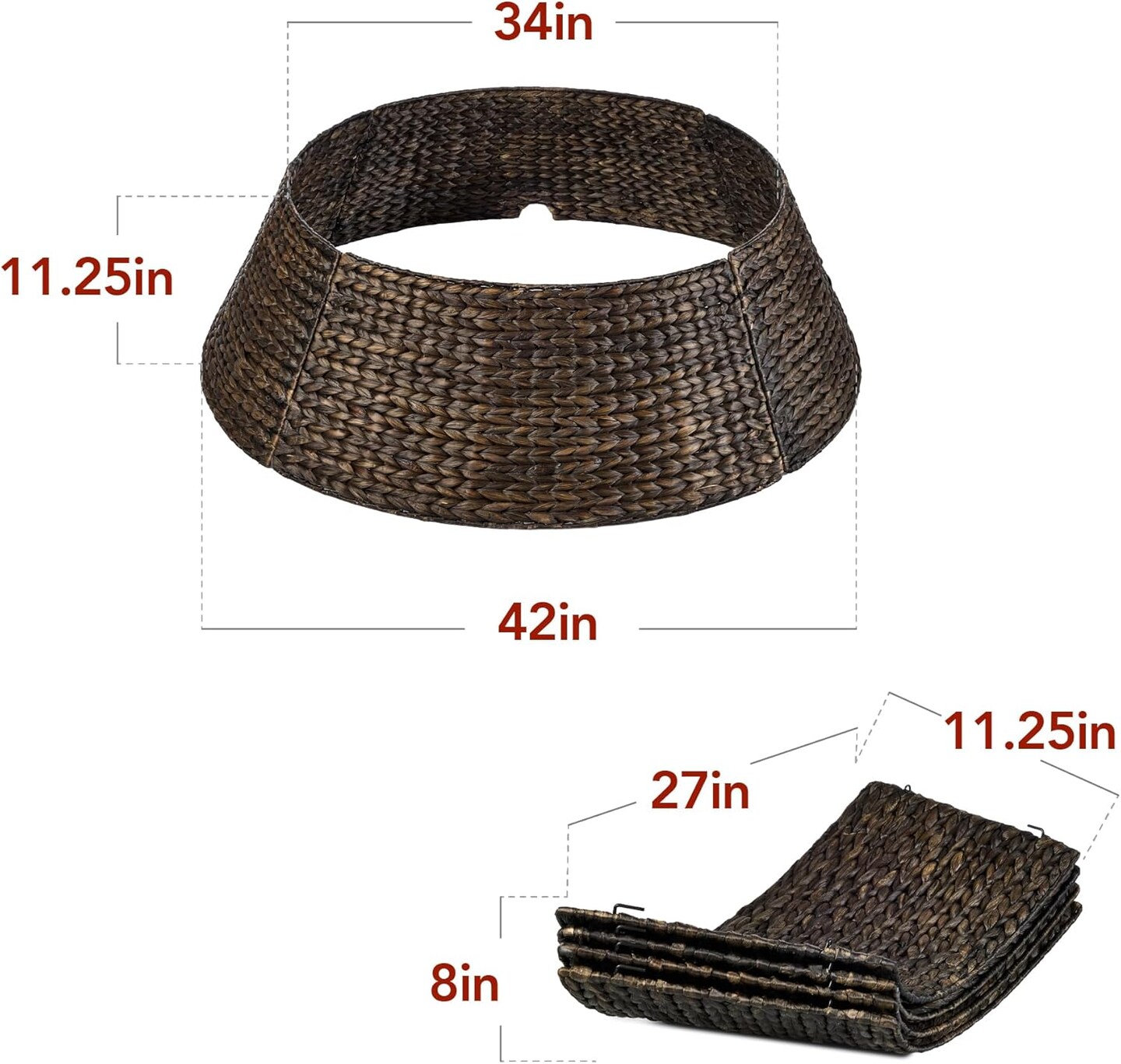 Natural Water Hyacinth Christmas Tree Collar Braided Design with Cord Cut Out and Easy Assembly