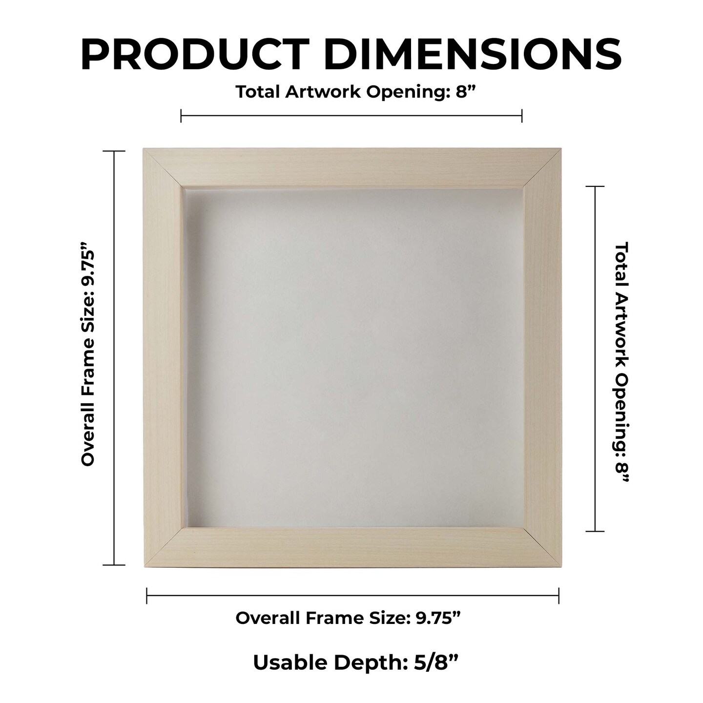 Natural Whitewash Wood Shadow Box Frame with Acrylic Front - White Suede Backing, 30 Sizes