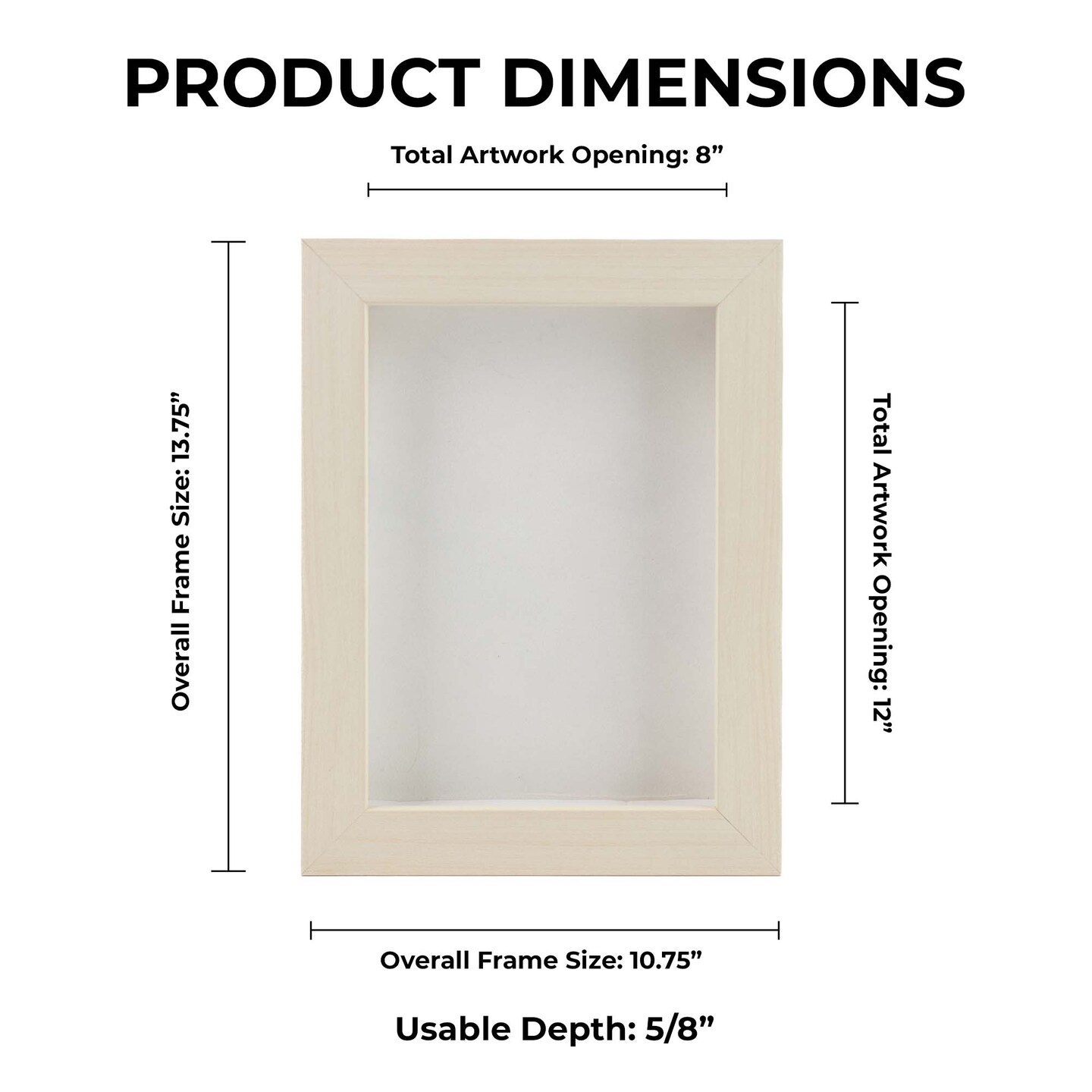 Natural Whitewash Wood Shadow Box Frame with Acrylic Front - White Suede Backing, 30 Sizes