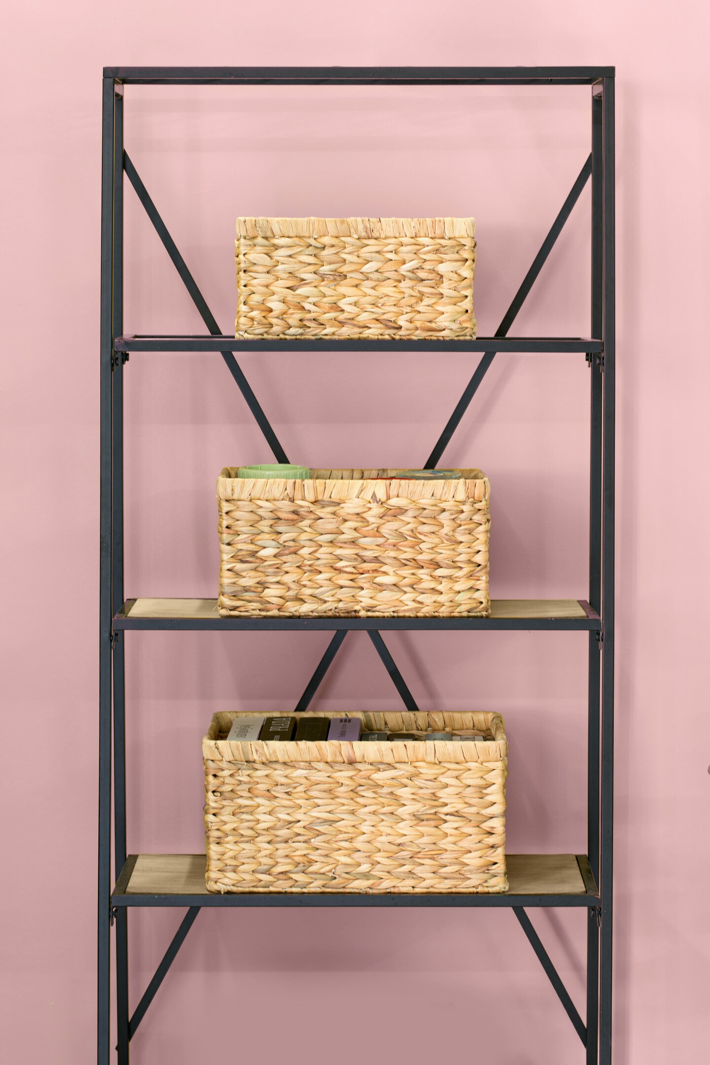 Natural Woven Water Hyacinth Wicker Rectangular Storage Bin Basket with Handles