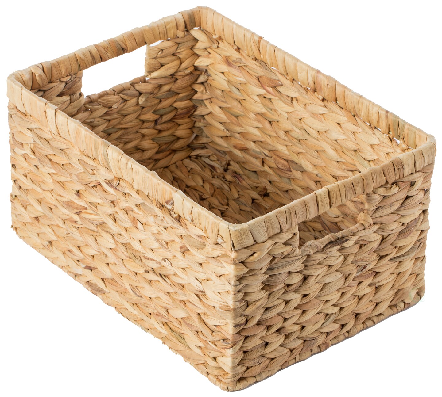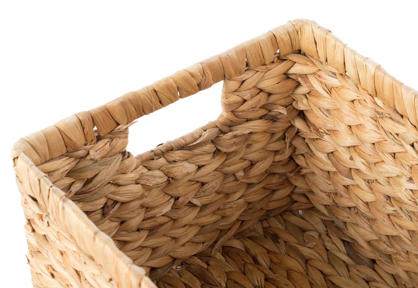 Natural Woven Water Hyacinth Wicker Rectangular Storage Bin Basket with Handles