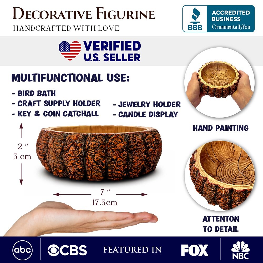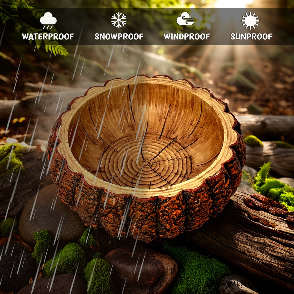 Nature's Basin Tree Bark Themed Bowl, 6" Resin Woodlandbasin Bird Bath Decor