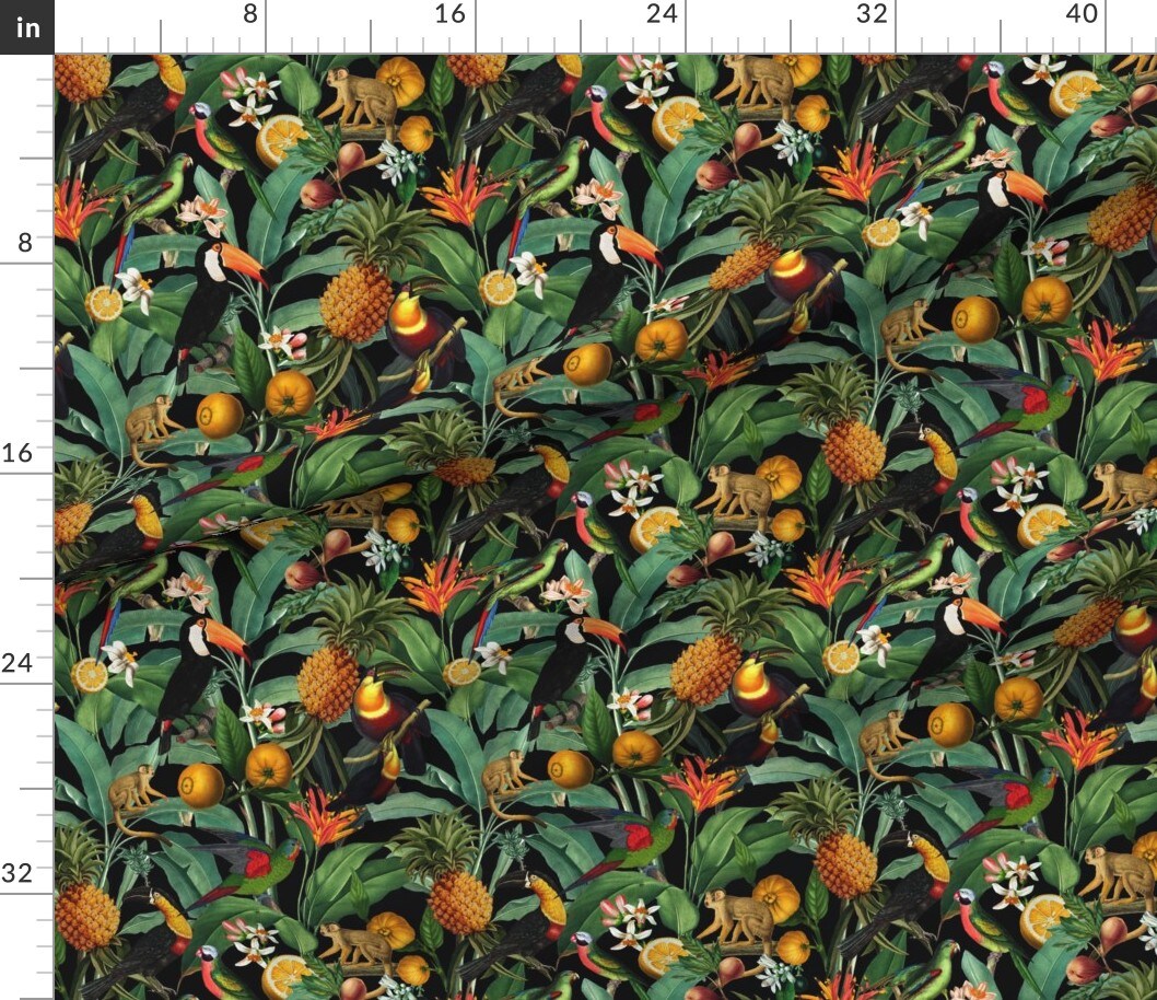 Nature Botanical Tropical Toucans Monkeys Parrots Custom Printed Fabric by Spoonflower Various Fabrics by the Yard or Fat Quarter