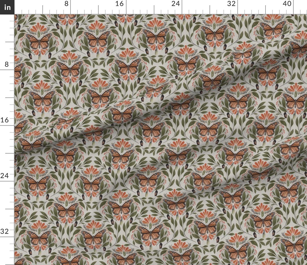 Nature Garden Insect Monarch Butterfly Art Nouveau Victorian Dark Academia Custom Printed Fabric by Spoonflower Various Fabrics by the Yard or Fat Quarter