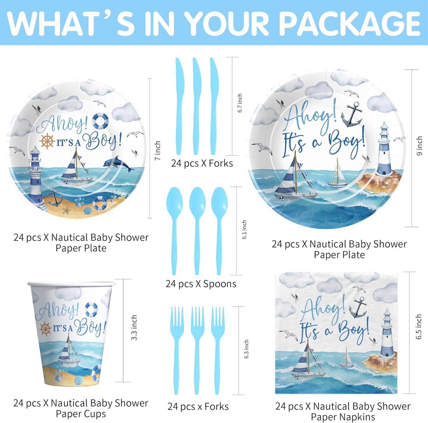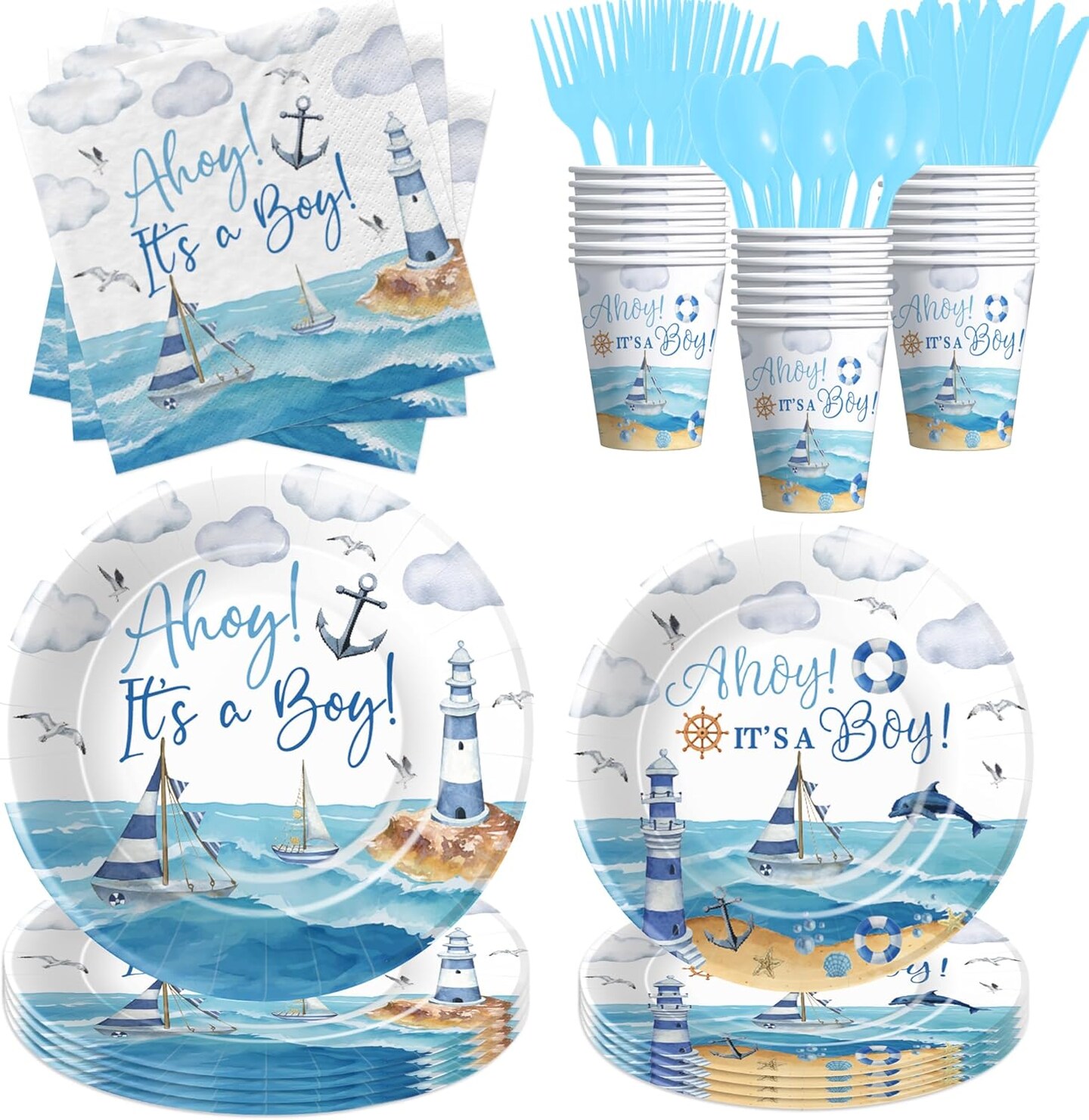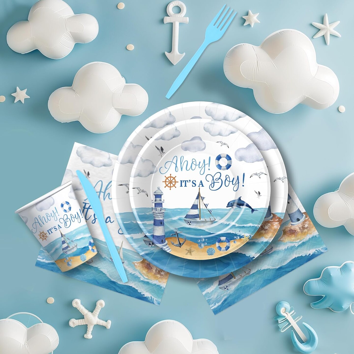 Nautical Baby Shower Tableware Set – Serves 24 Guests