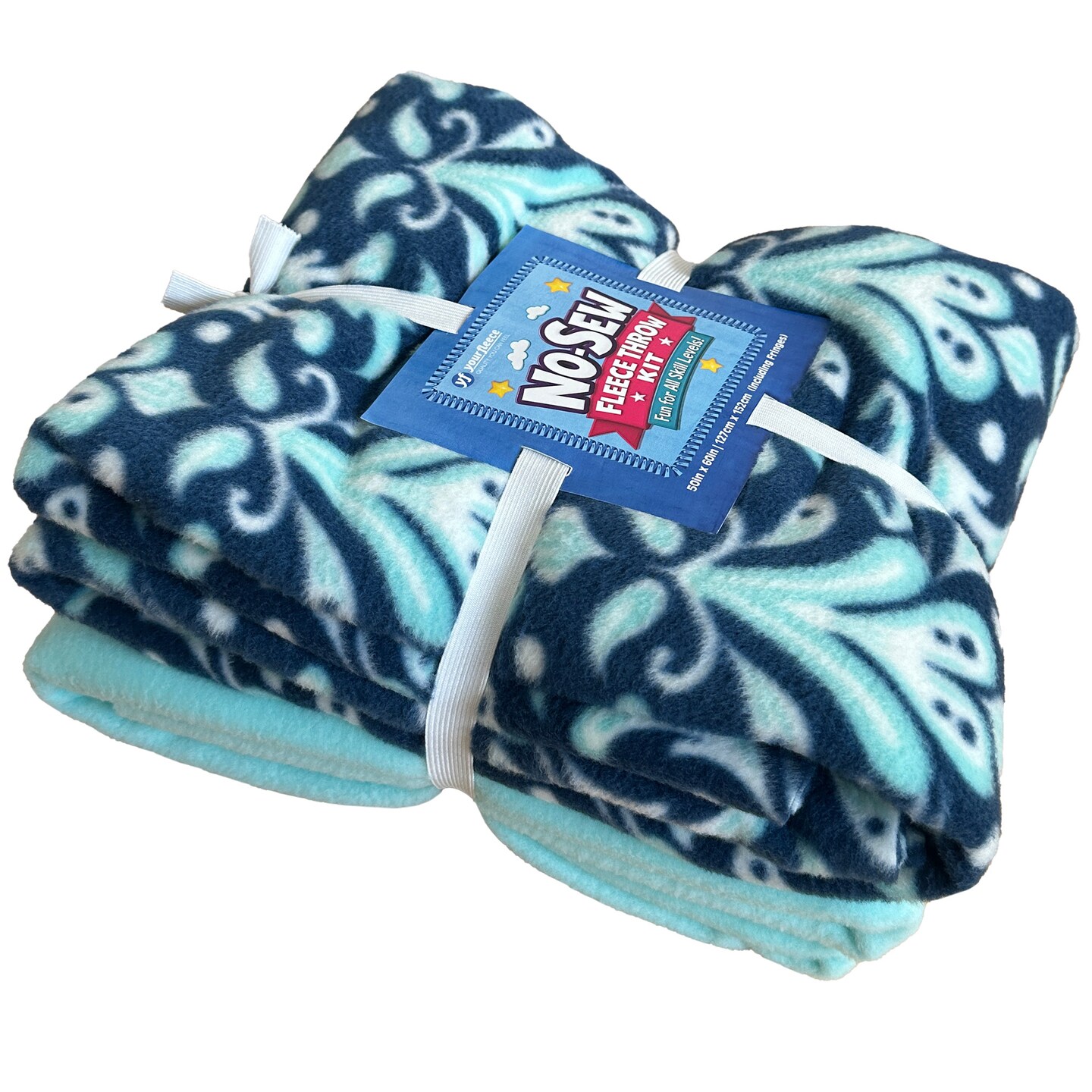 Nautical Damask Anti-Pill Premium No-Sew Throw Fleece Fabric Kit