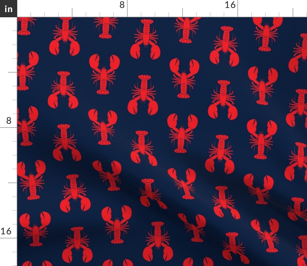 Nautical Lobster Red Lobsters Navy New England maine Custom Printed Fabric by Spoonflower Various Fabrics by the Yard or Fat Quarter