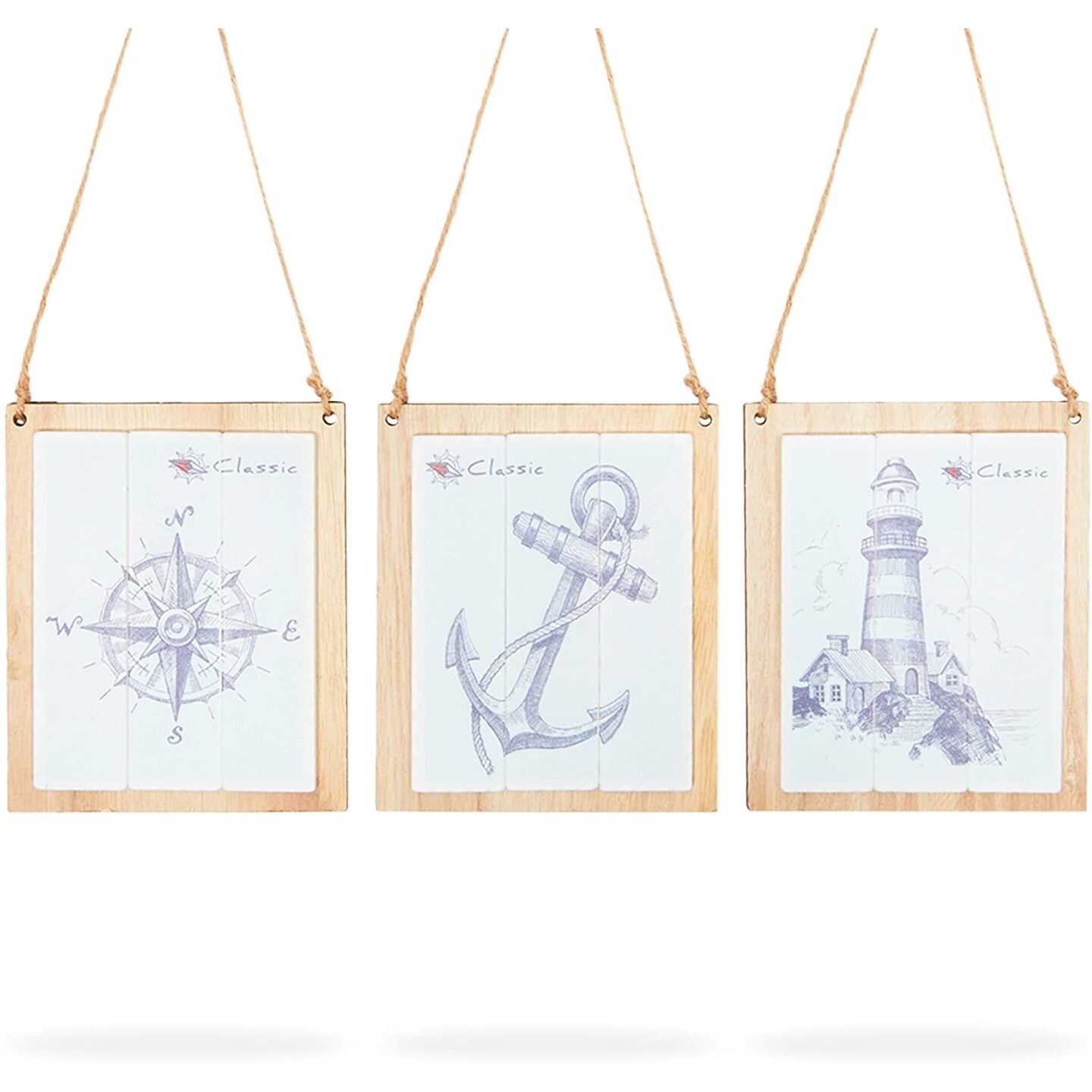 Nautical Wall Decor, Wooden Vintage Designs for Home Decor (5.5 x 4.7 In, 3 Pack)