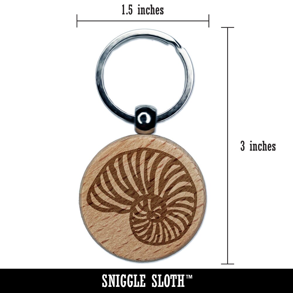 Nautilus Beach Sea Shell Engraved Wood Round Keychain Tag Charm