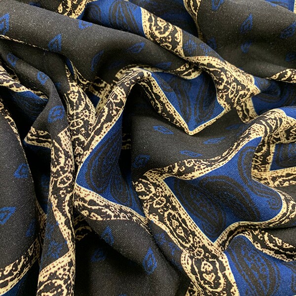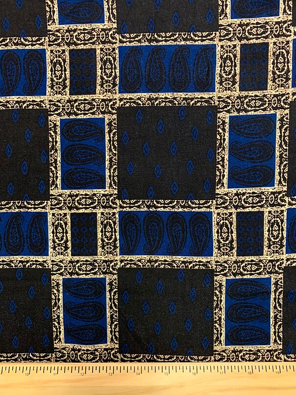 Navy and Black Bandana Patchwork Print Rayon Challis Fabric By the Yard