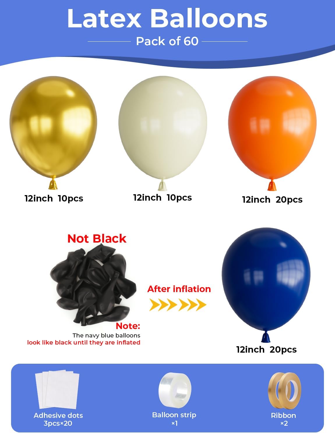 Navy Blue and Orange Balloons,60pcs Graduation Balloons Set,12 Inch Metallic Gold Balloon Dark Blue White Latex Balloon for Boys Men Graduation Birthday Wedding Baby Shower Party Decorations