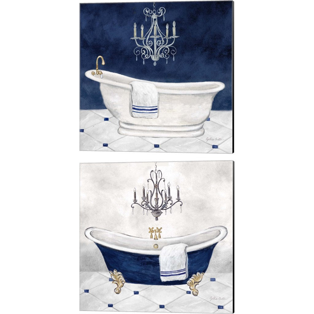 Navy Blue Bath by Cynthia Coulter, 2 Piece Canvas Art Set