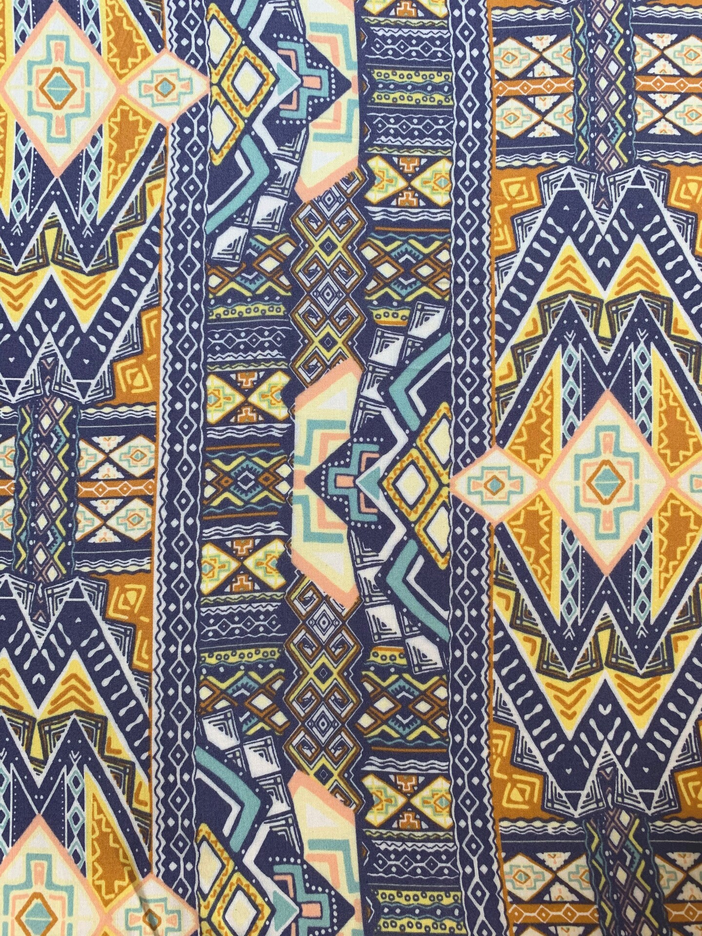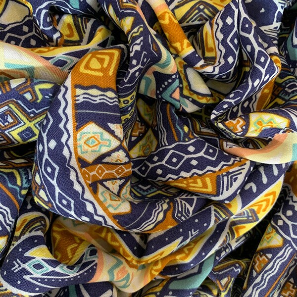 Navy Blue Multi Print Rayon Challis Fabric By the Yard