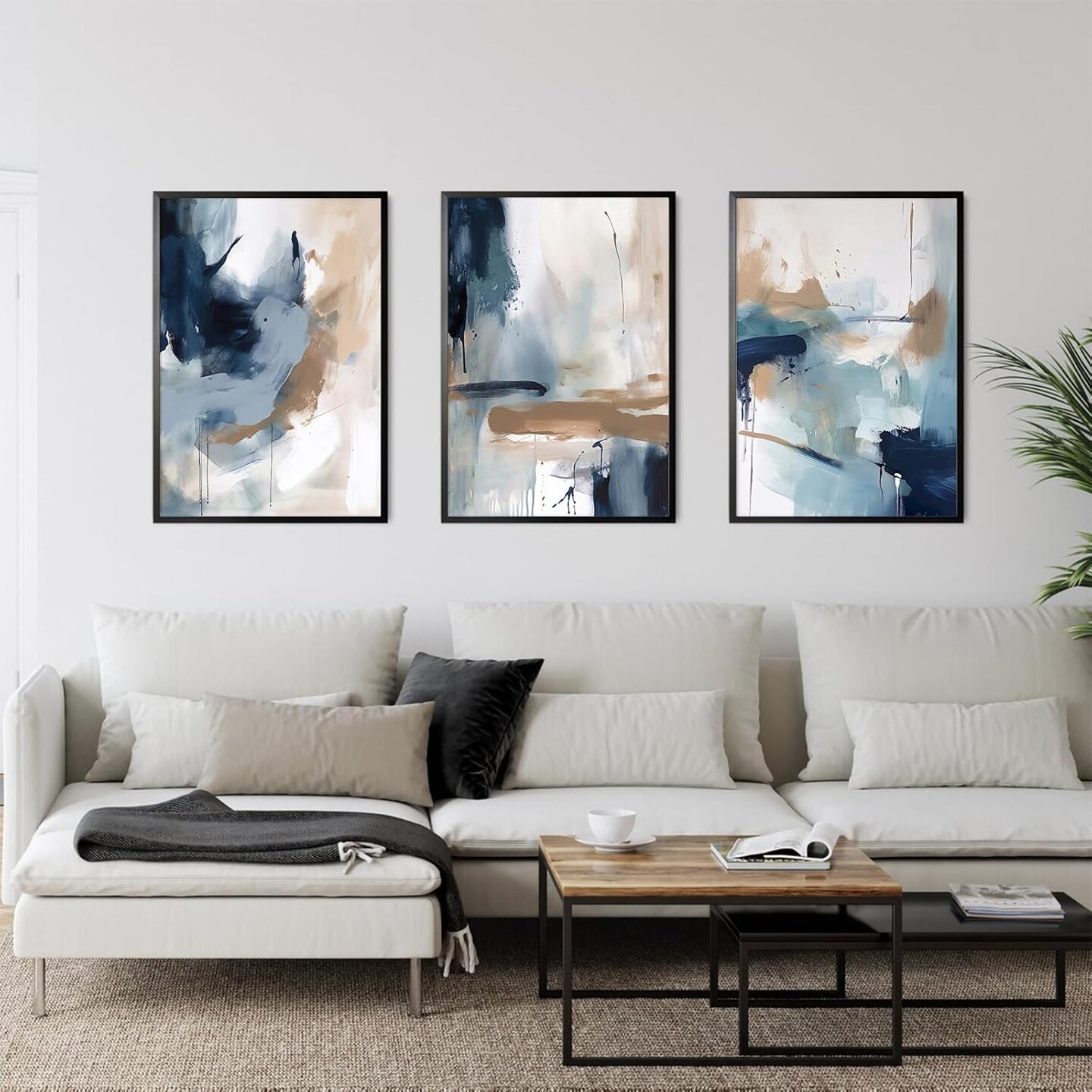 Navy Blue Pictures Wall Art Abstract Modern