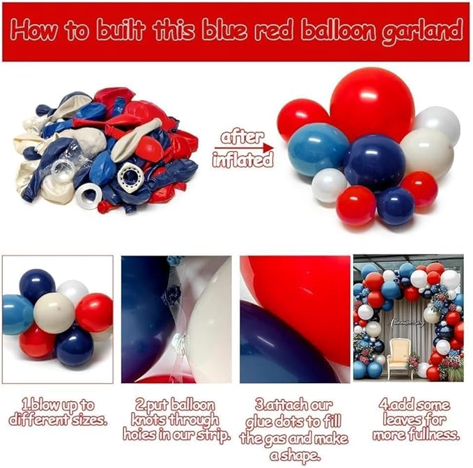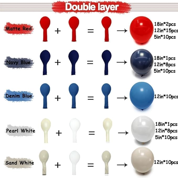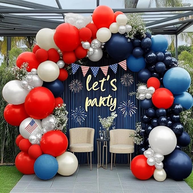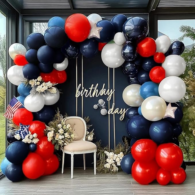 Navy Blue Red White Balloon Arch, Double Stuffed Royal Blue Red Pearl White Sand Balloon Garland Kit for Birthday Graduation Baby Shower Patriotic Nautical Baseball 4th of July Party Decor