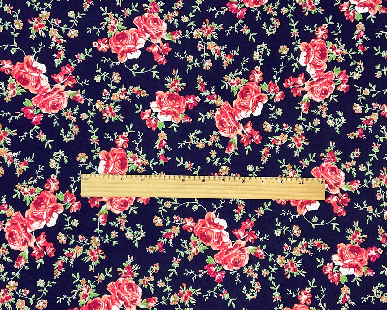 Navy Blue-Multi Poly Stretch Spandex Floral Print DB Jersey Knit Fabric By the Yard