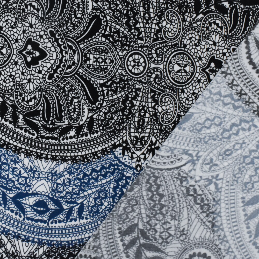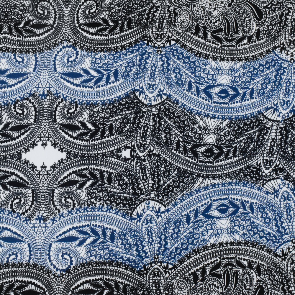 Navy Blue-White-Black Lace Border Printed Stretch Poly Jersey Knit Fabric By the Yard
