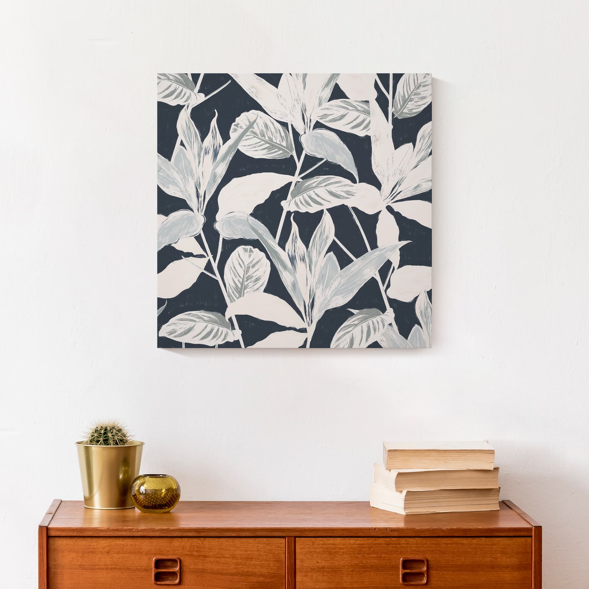 Navy Botanical Leaves Canvas Wall Art
