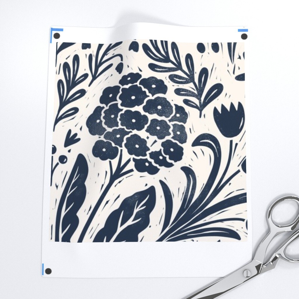 Navy Flowers Cream Blue Botanical Block Print Summer Garden Cottagecore Custom Printed Fabric by Spoonflower Various Fabrics by the Yard or Fat Quarter