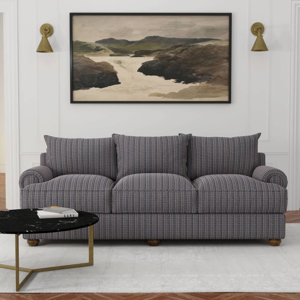 Navy Mona - Blue Stripe Upholstery Fabric 54 Inches"