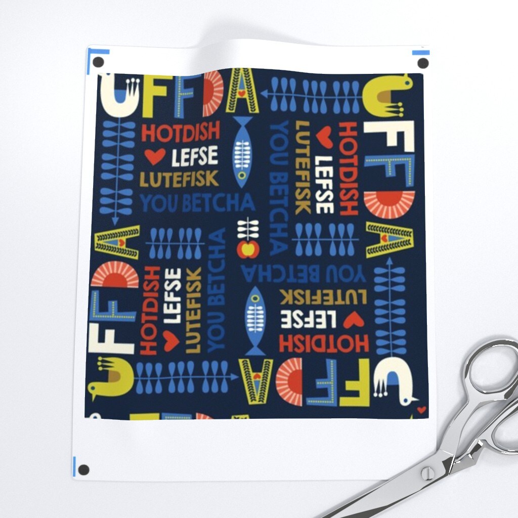 Navy Scandinavian Nordic Floral Custom Printed Fabric by Spoonflower Various Fabrics by the Yard or Fat Quarter