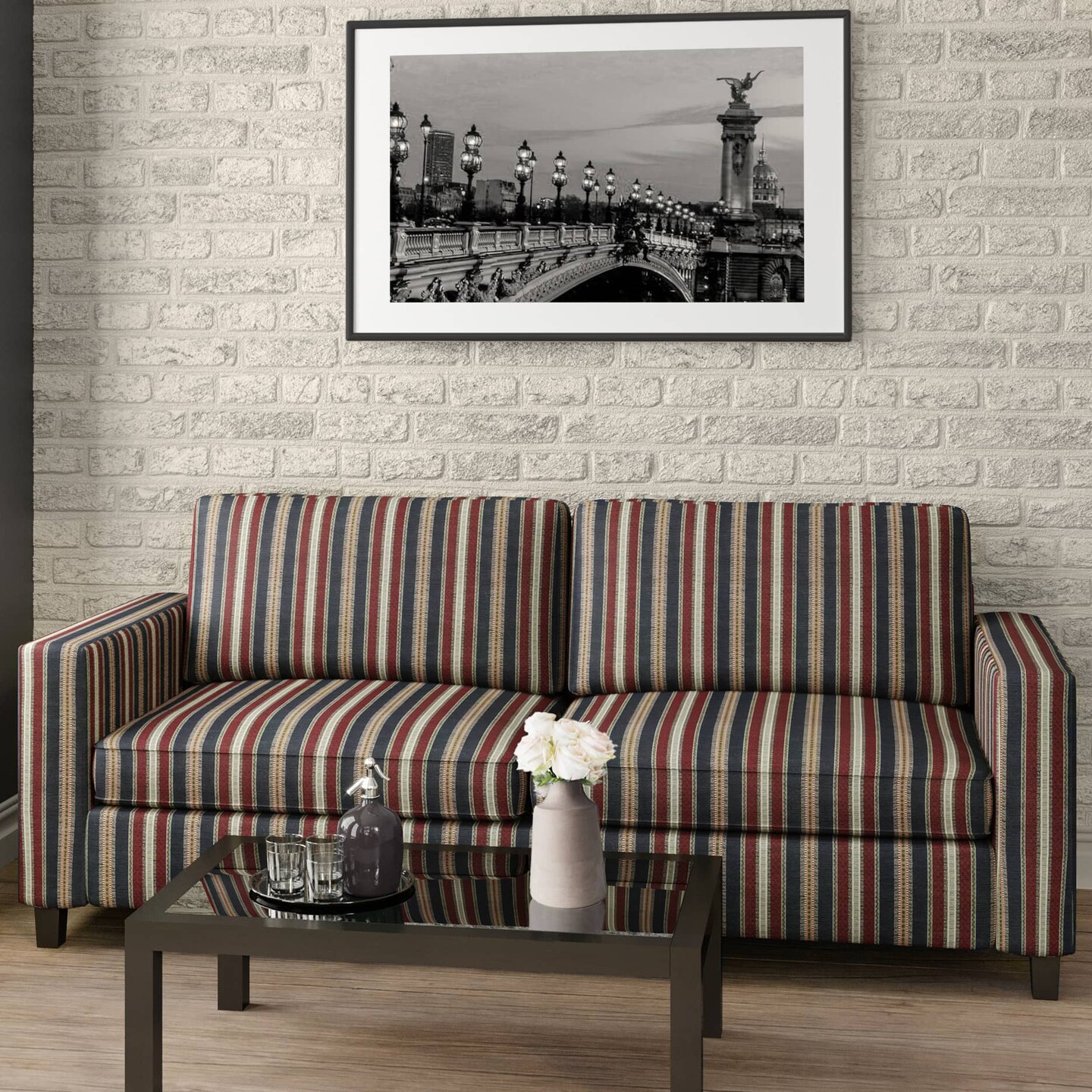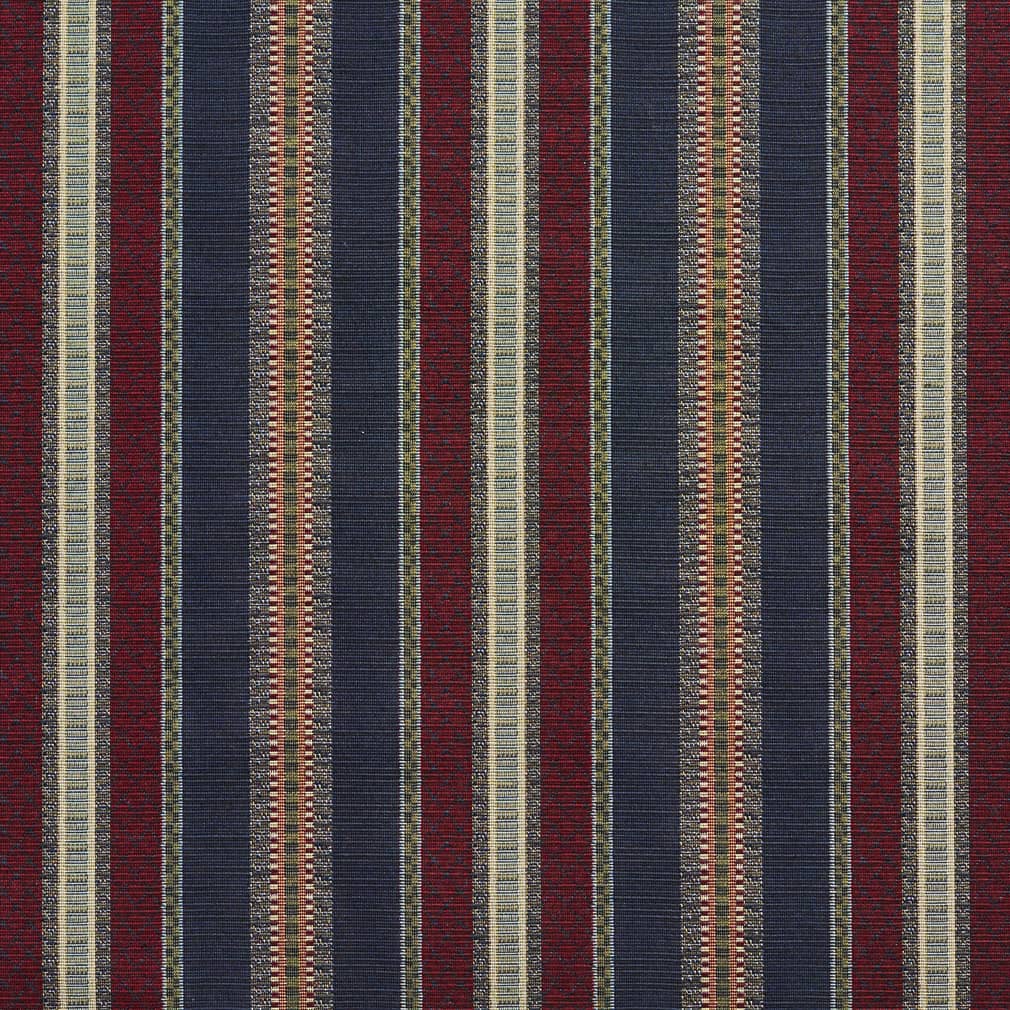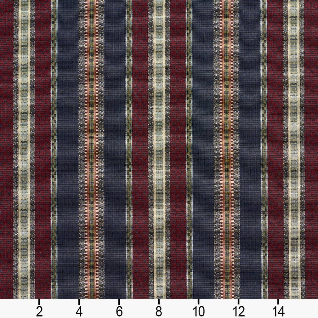 Navy Stripe - Blue,Red & Burgundy Stripe Upholstery Fabric 54 Inches"