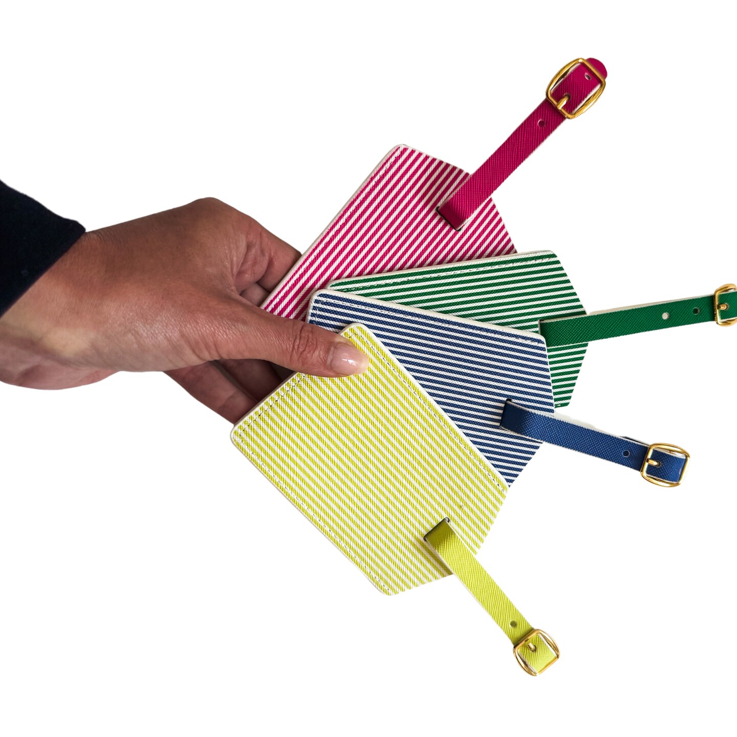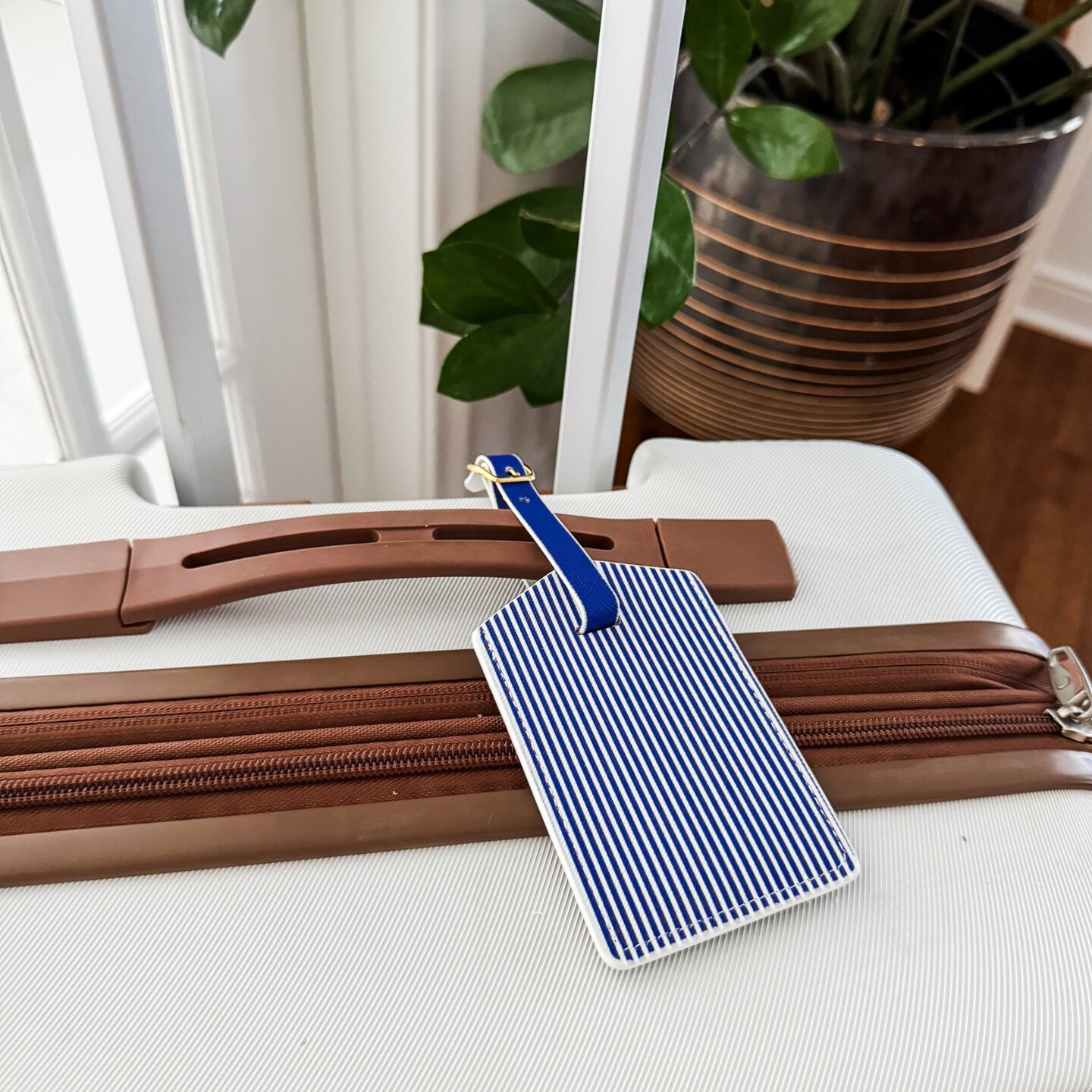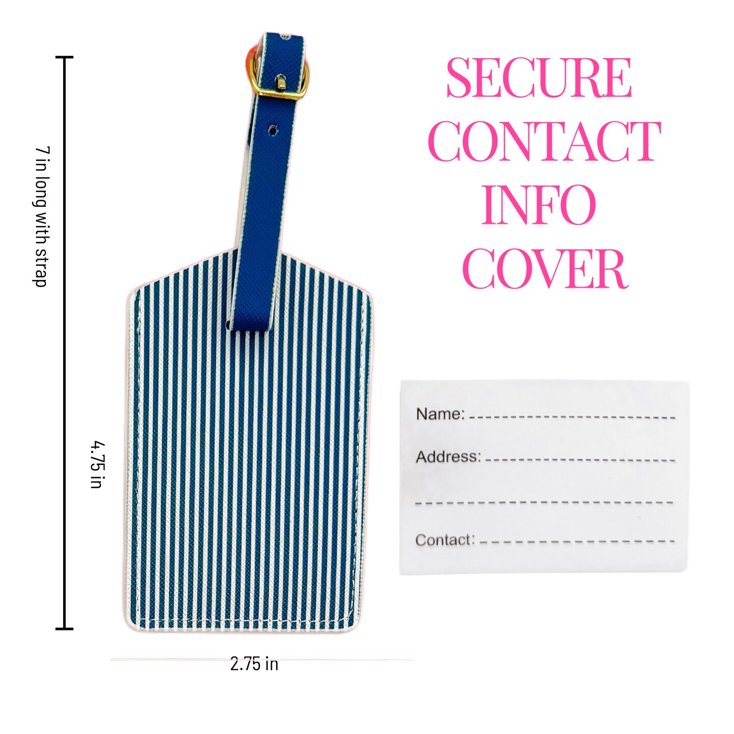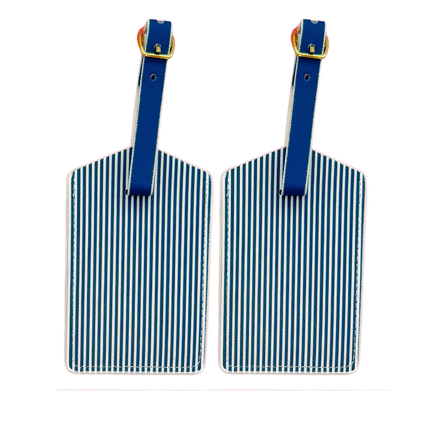 Navy Stripe Luggage Tag Set | Vegan Leather Travel Accessory | 2-Pack