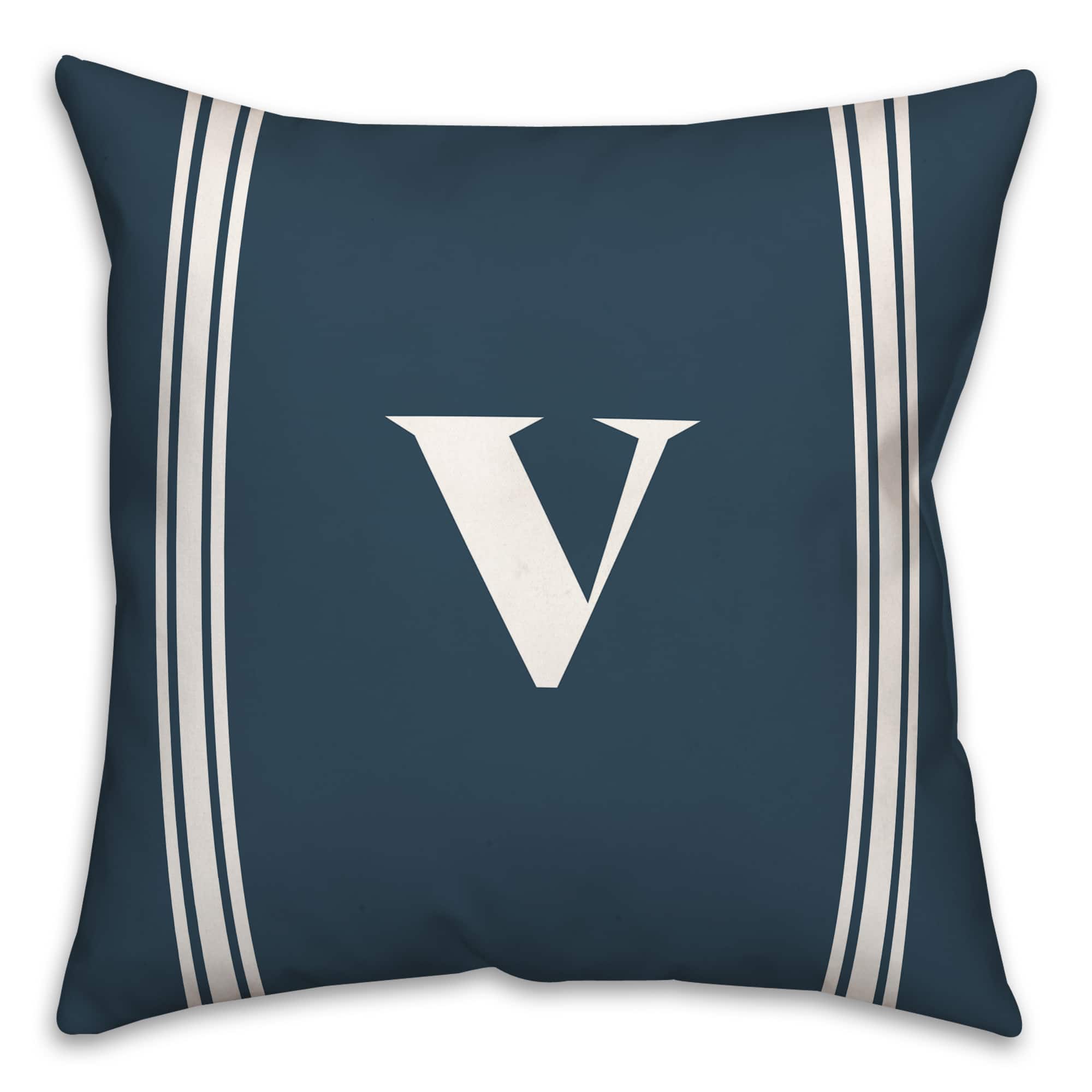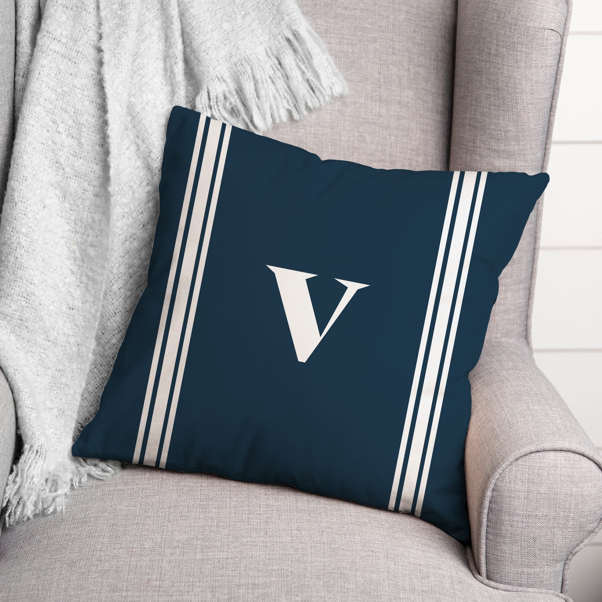 Navy Striped Monogram Throw Pillow