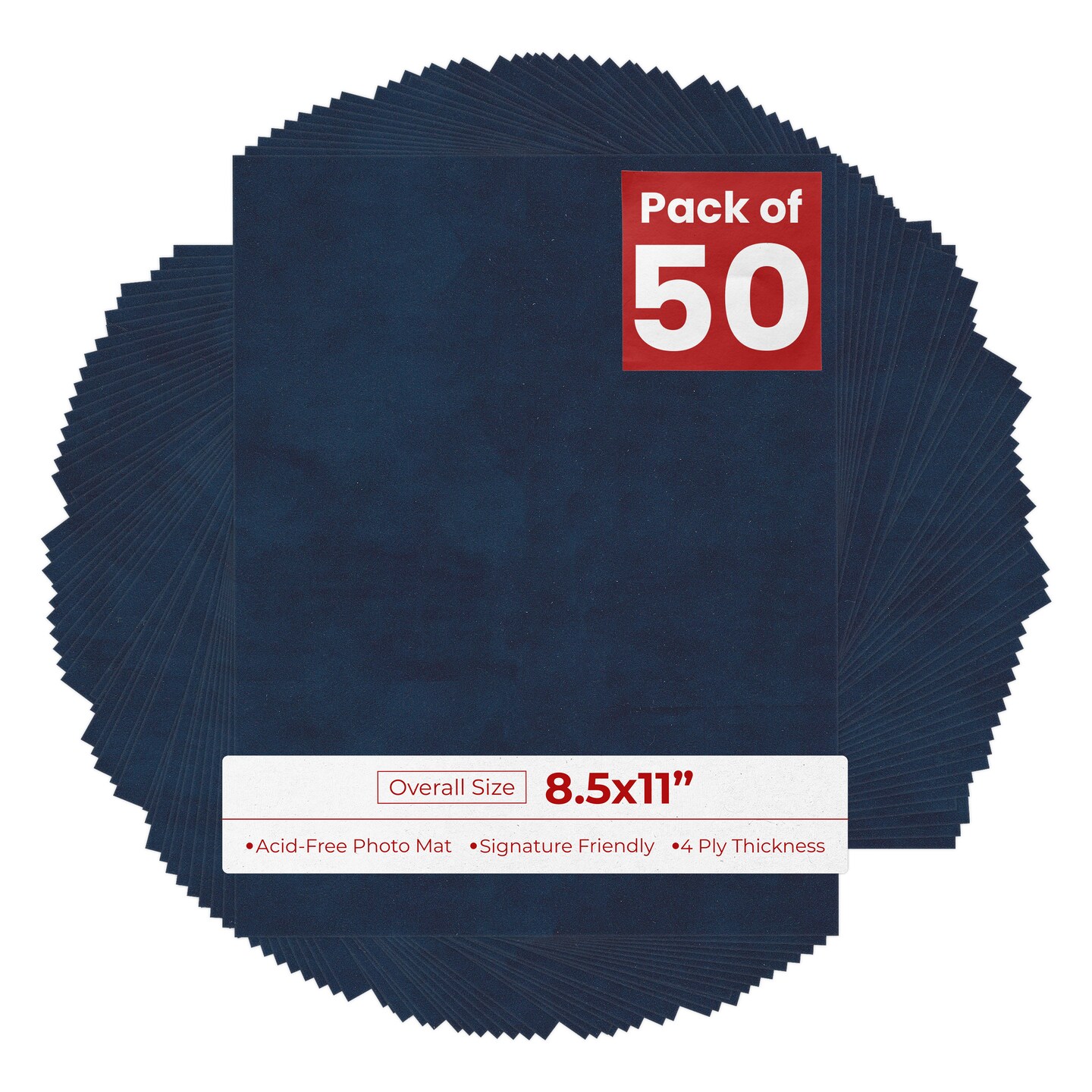 Navy Suede 8.5x11 Uncut Mat Board - Blank Sheets, No Opening