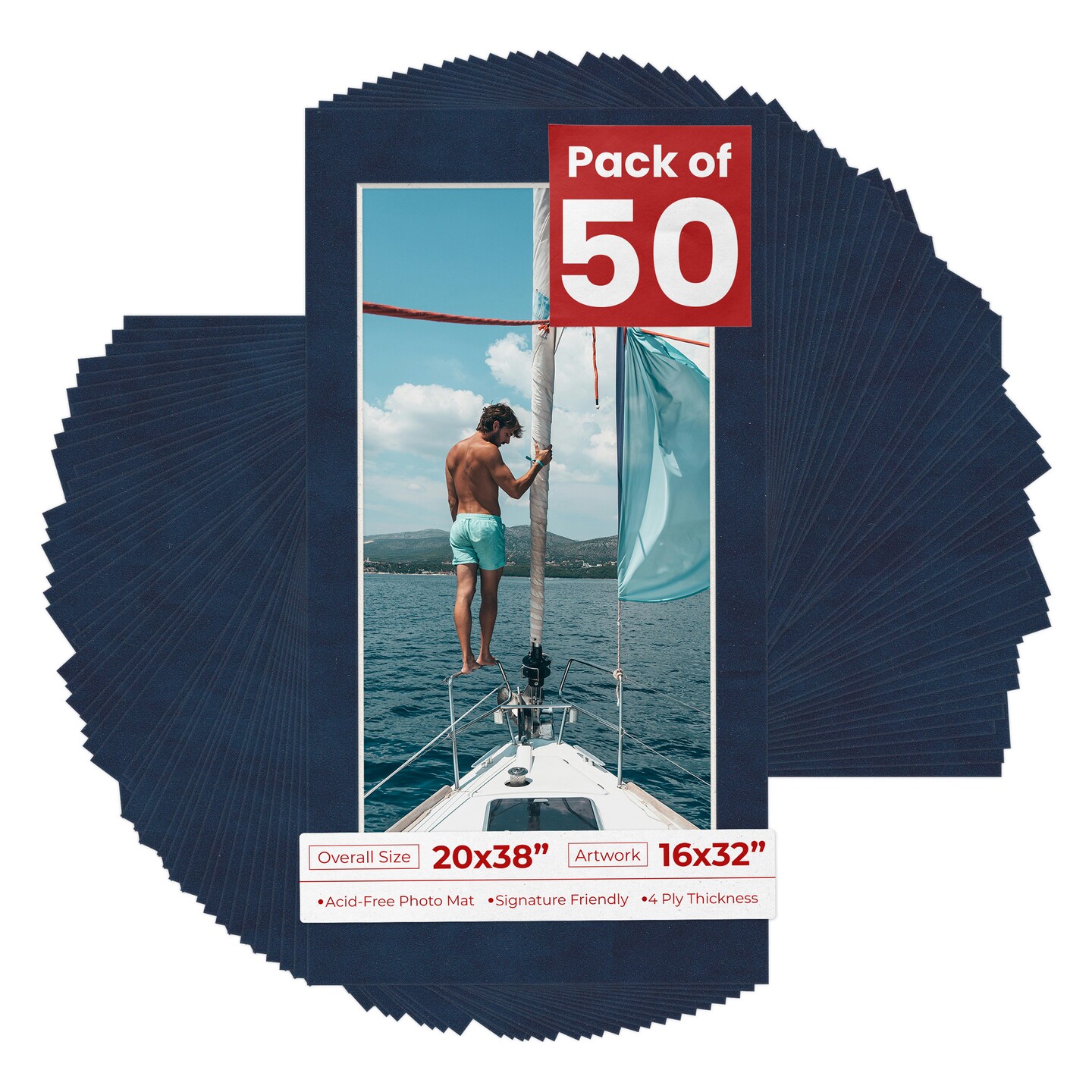 Navy Suede Mat Board for 20x38 Frames - Fits 16x32 Photos