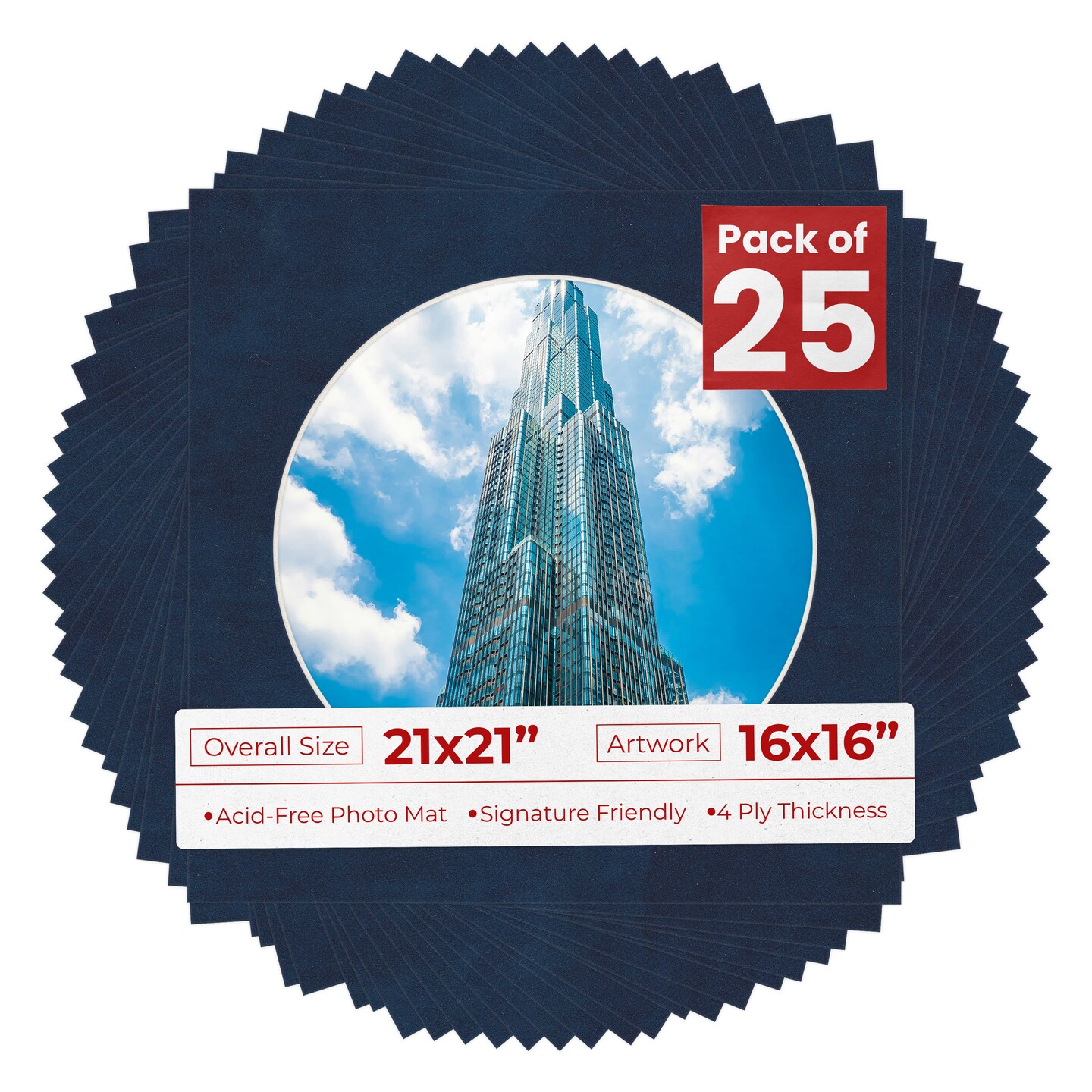 Navy Suede Mat Board for 21x21 Frames - Circle Opening for 16x16 Photos