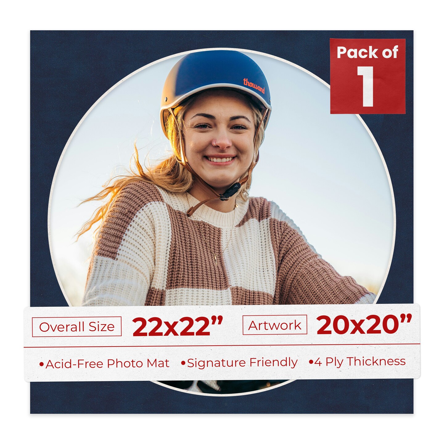 Navy Suede Mat Board for 22x22 Frames - Circle Opening for 20x20 Photos