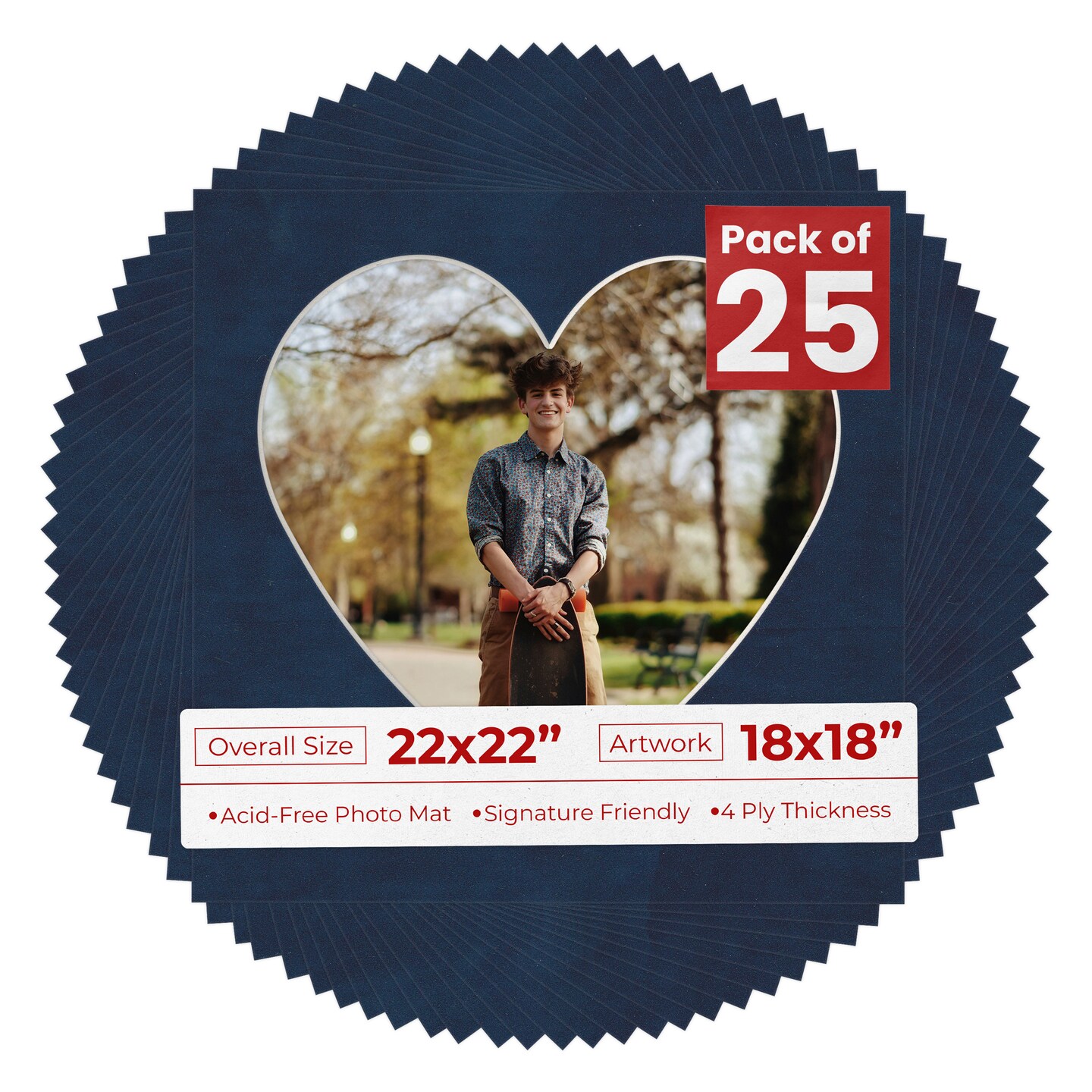Navy Suede Mat Board for 22x22 Frames - Heart Opening for 18x18 Photos
