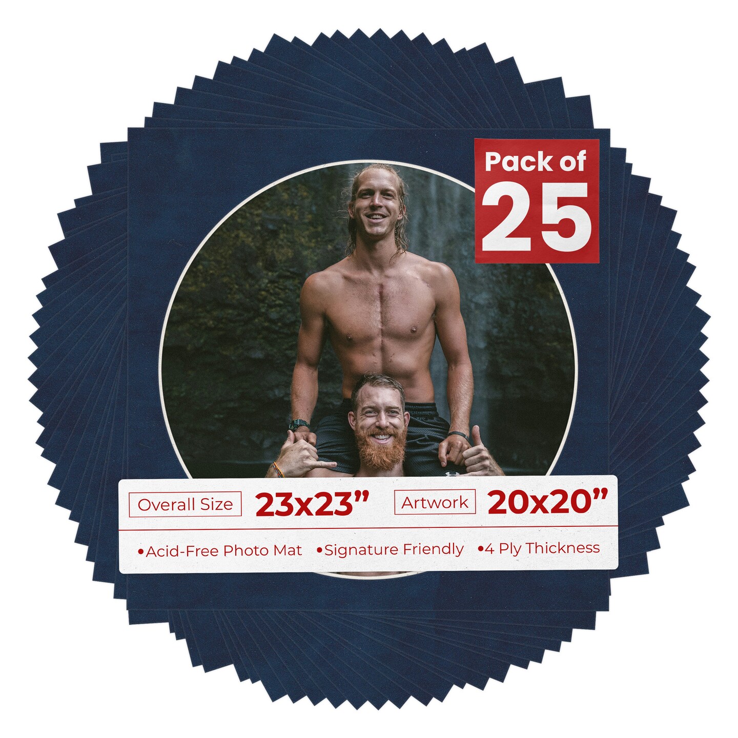 Navy Suede Mat Board for 23x23 Frames - Circle Opening for 20x20 Photos
