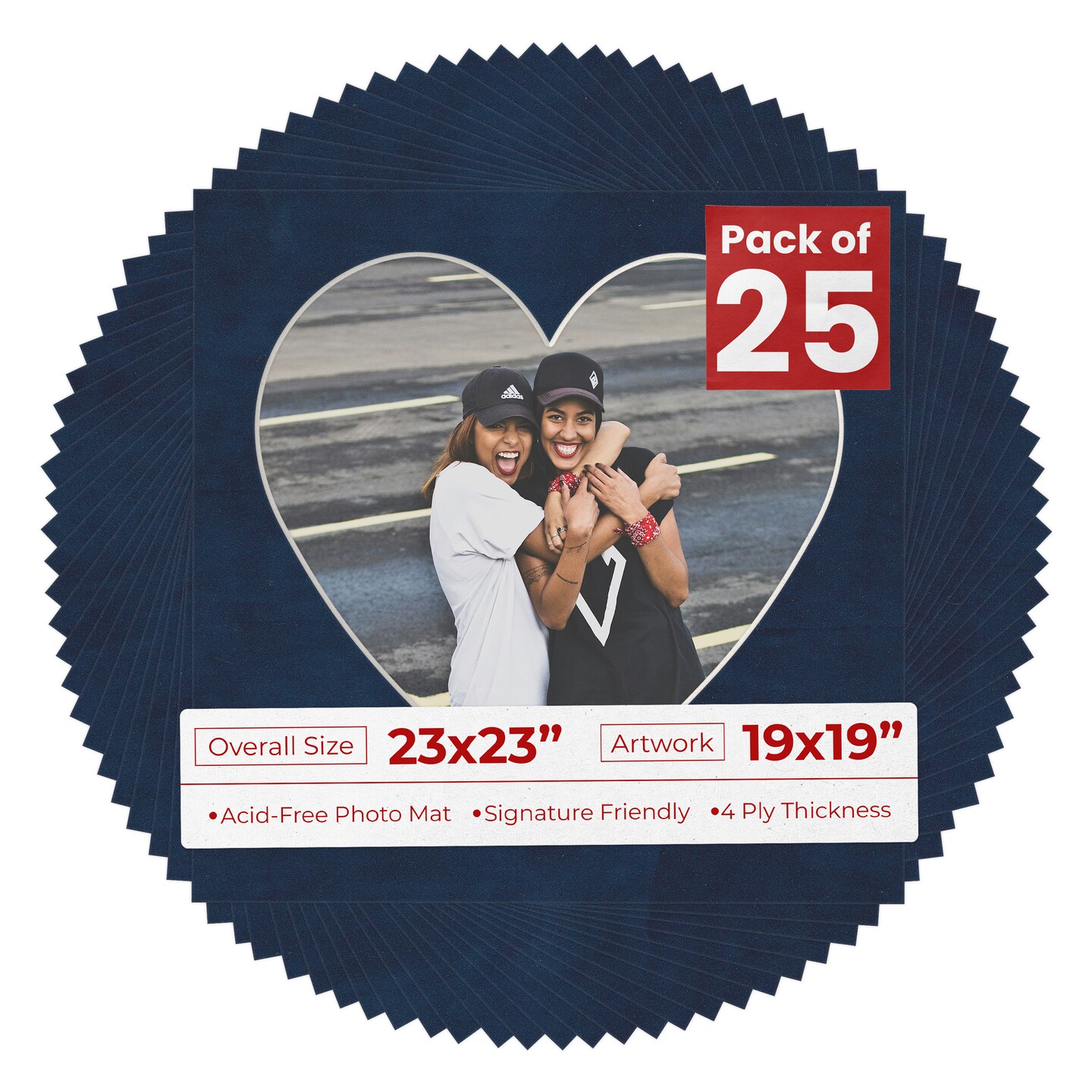 Navy Suede Mat Board for 23x23 Frames - Heart Opening for 19x19 Photos