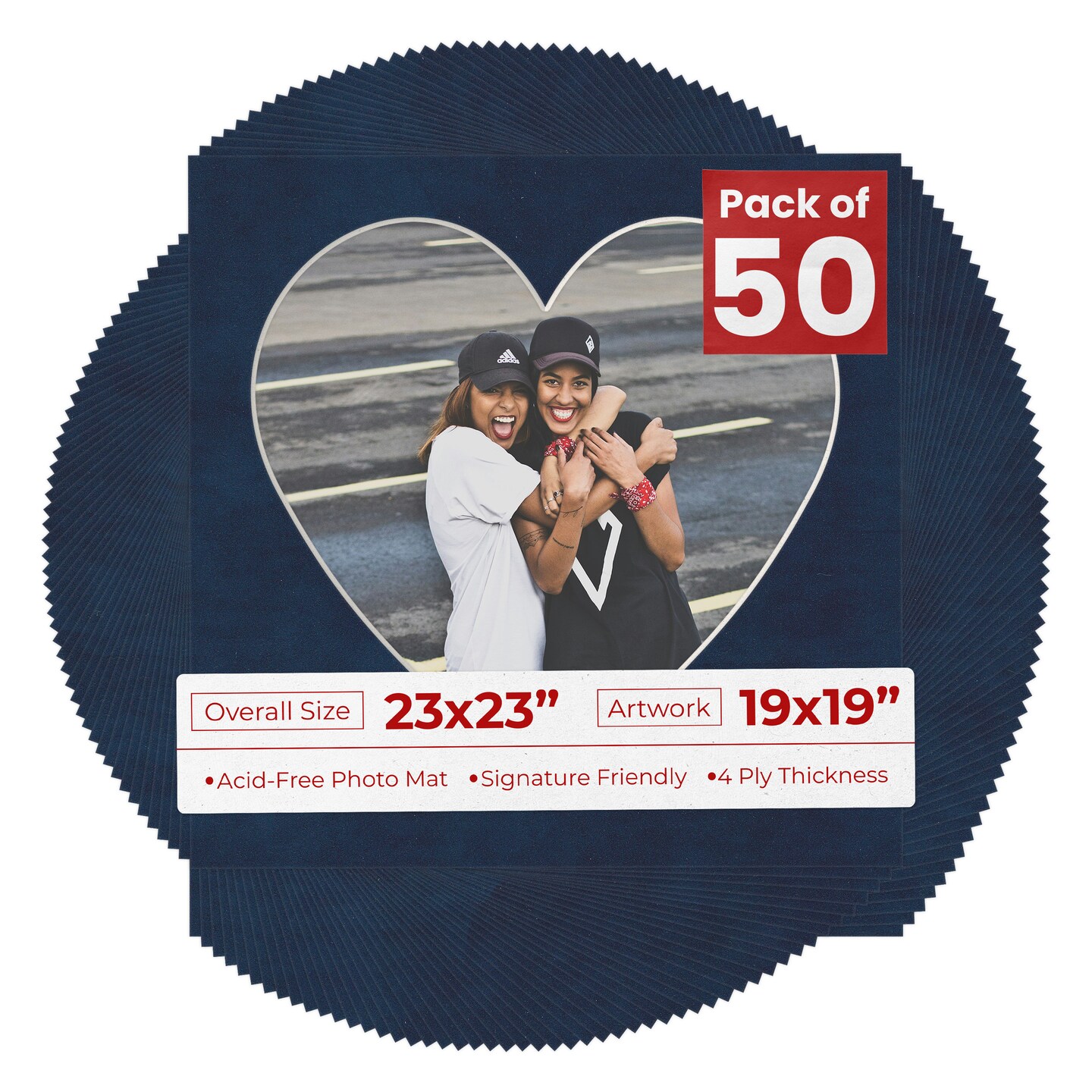 Navy Suede Mat Board for 23x23 Frames - Heart Opening for 19x19 Photos